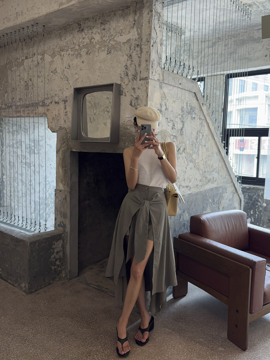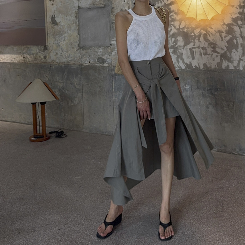한국 디자인 스트랩 보우 불규칙 스커트 여성 여름 새로운 복고풍 맞춤형 스커트 롱 스커트