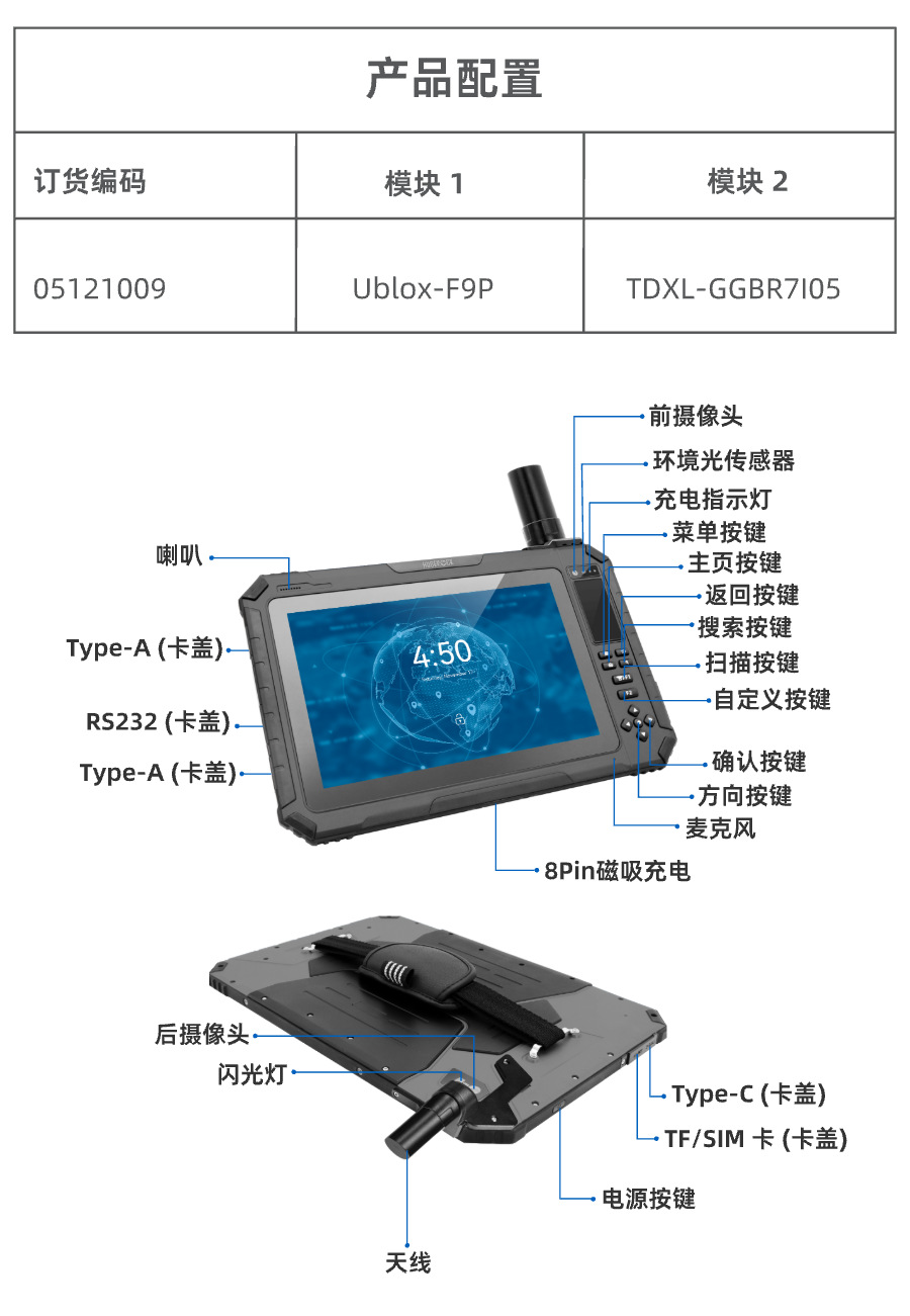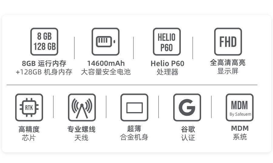 • 8+128G/회색/1200*1920/1000nits/F9P/SMA-GPS+다중 주파수 안테나