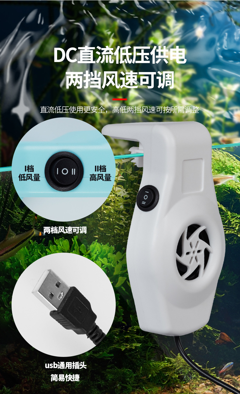 국경 간 수족관 팬 수조 냉각 미니 팬 USB 수생 식물 탱크 냉각 팬 2단 조절