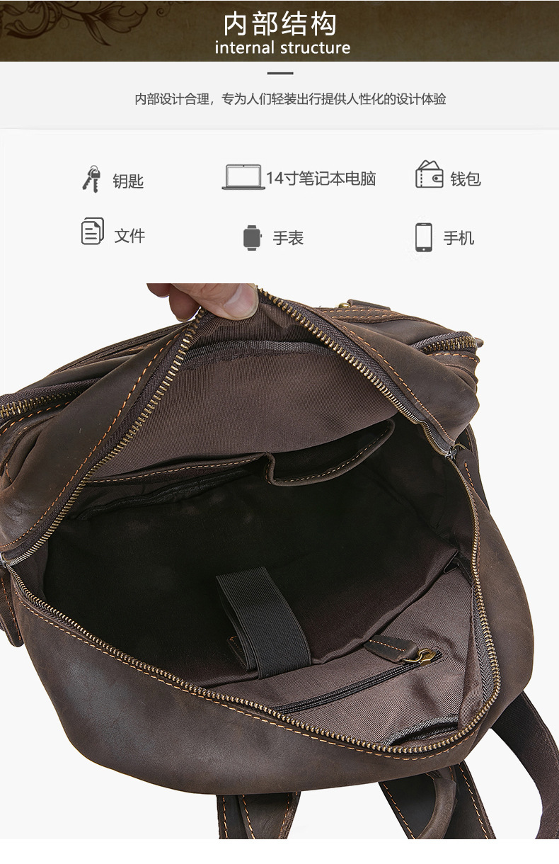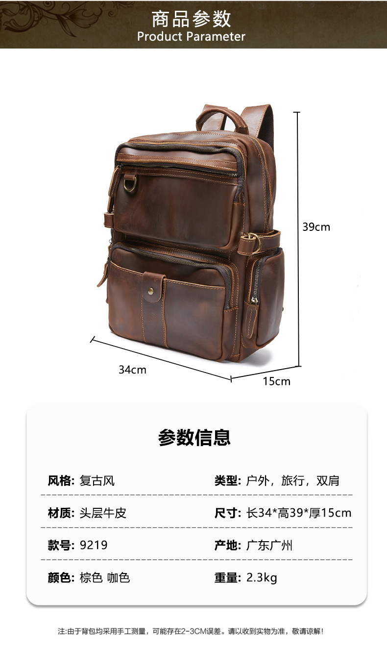 유럽과 미국의 국경 간 복고풍 미친 말 가죽 배낭 남성 수제 1 층 소 가죽 배낭 정품 가죽 캐주얼 여행 남성 가방