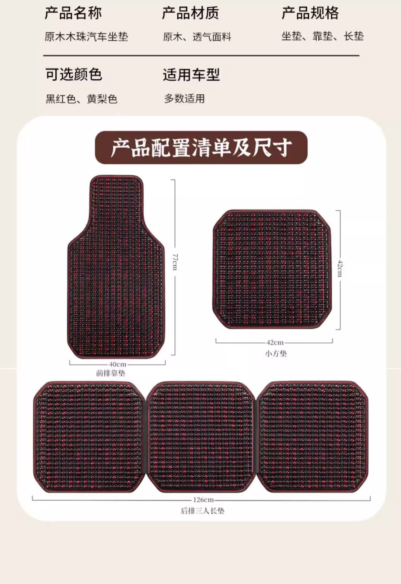 • 붉은색 나무구슬 [1인용시트+요추받침+머리받침] 시원하고 통기성이 좋으며 땀이 나지 않음