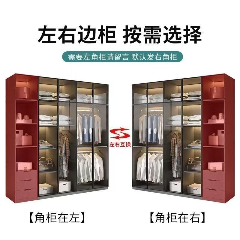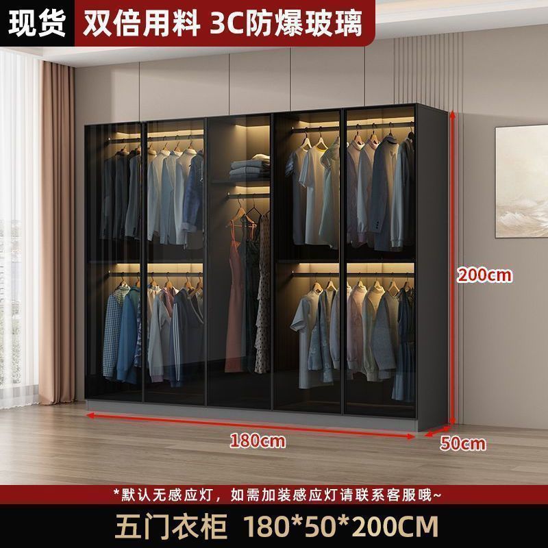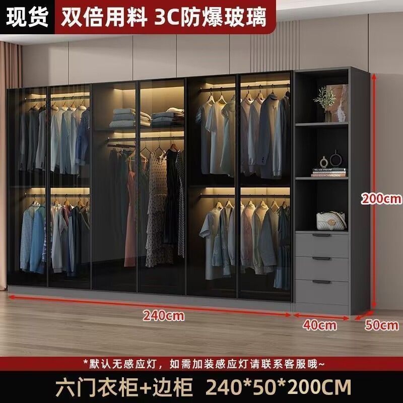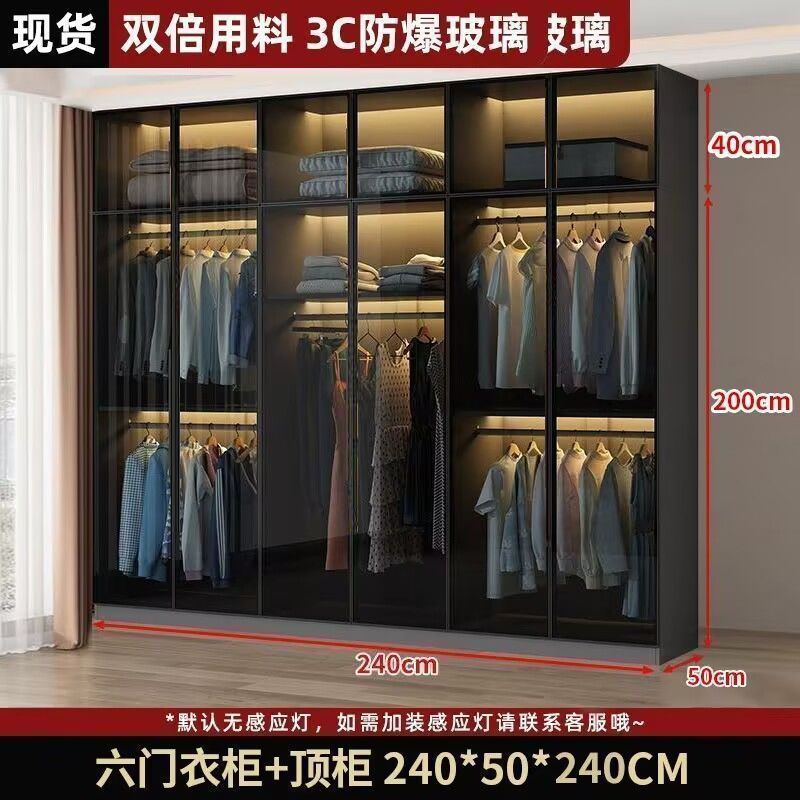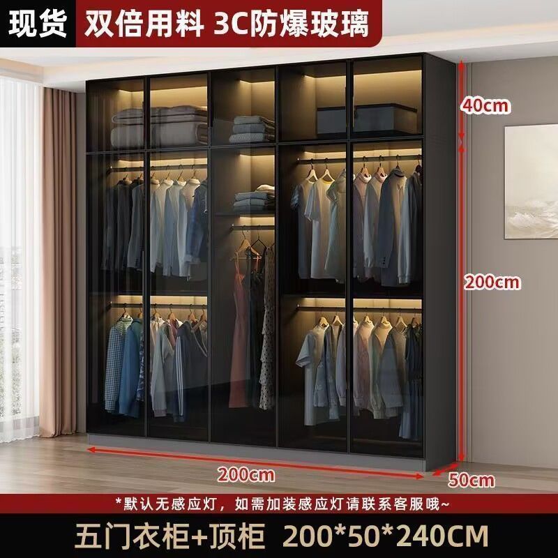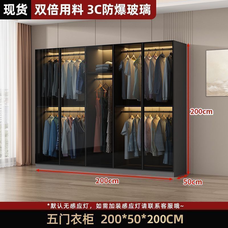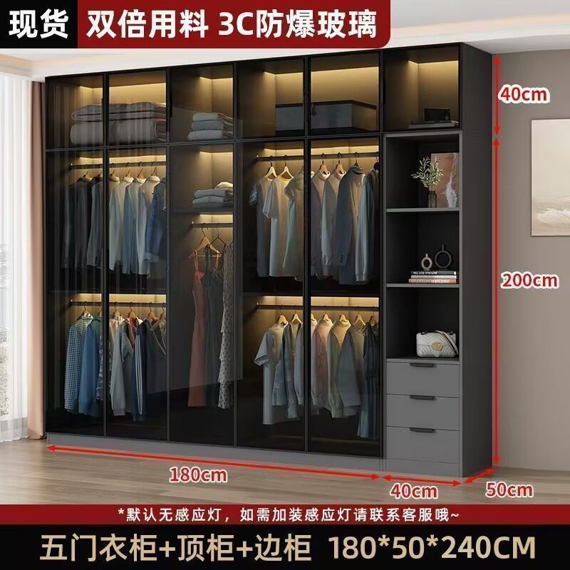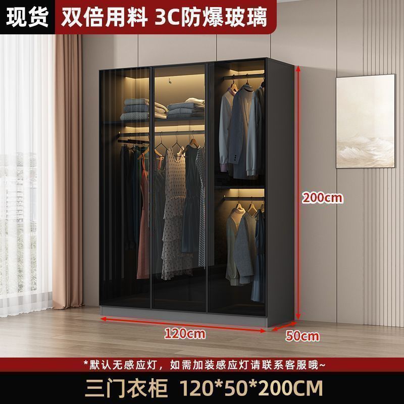 가벼운 고급 옷장 홈 침실 단단한 나무 작은 아파트 옷장 현대 간단한 스토리지 캐비닛 설치가 필요없는 유리 캐비닛