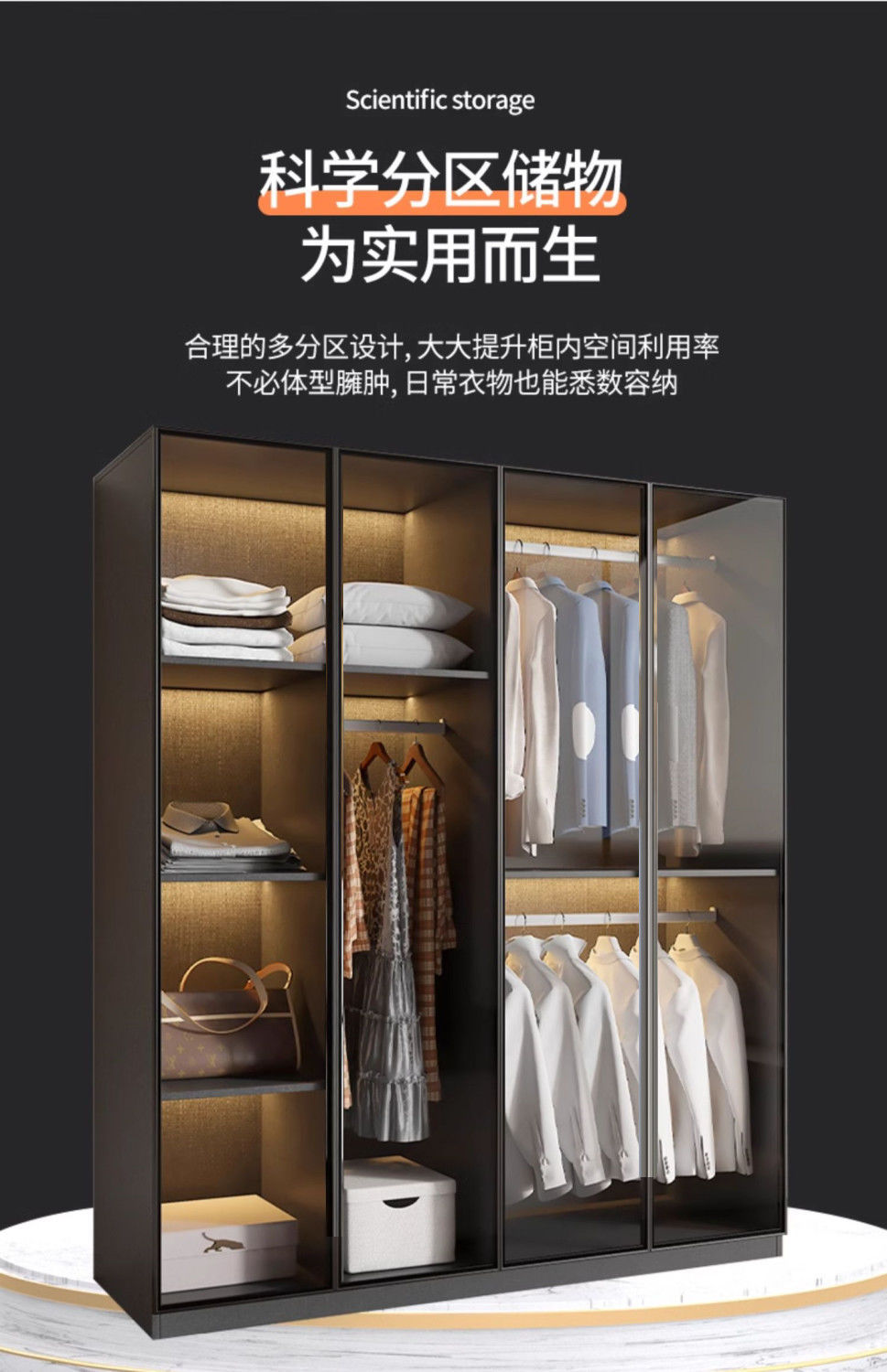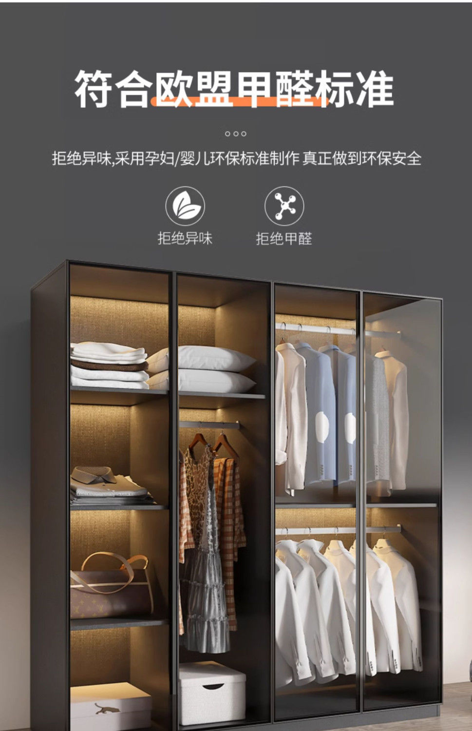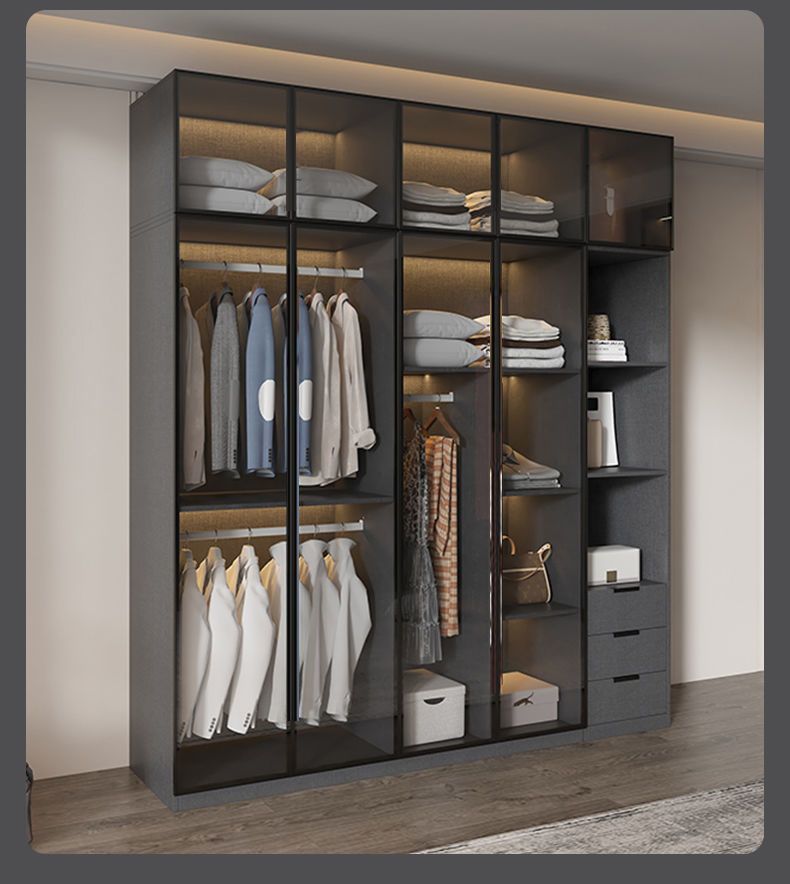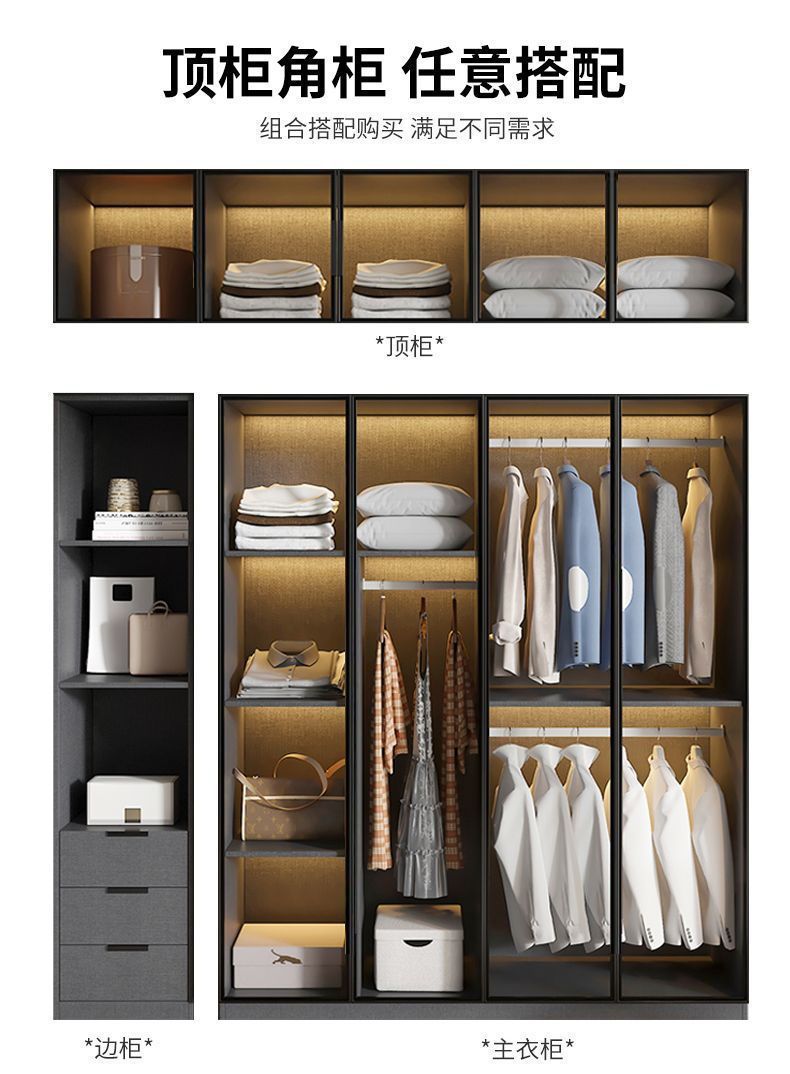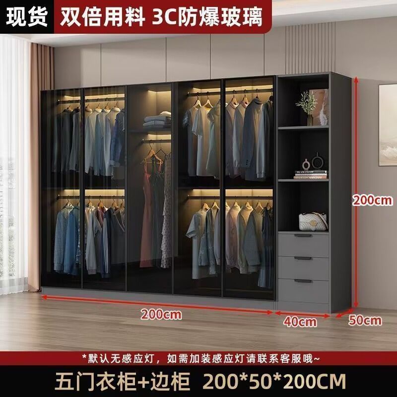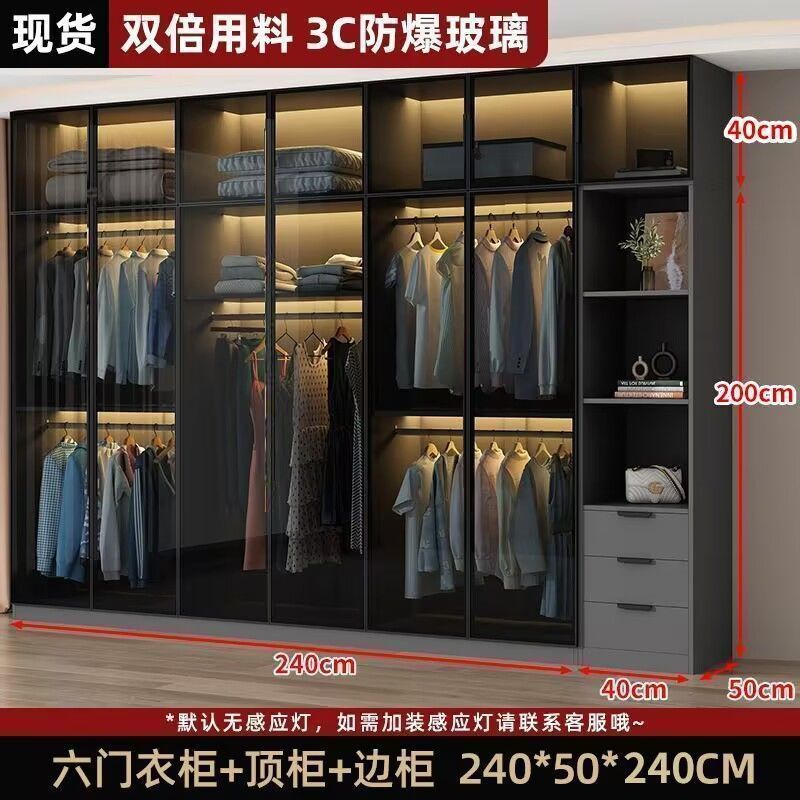 가벼운 고급 옷장 홈 침실 단단한 나무 작은 아파트 옷장 현대 간단한 스토리지 캐비닛 설치가 필요없는 유리 캐비닛