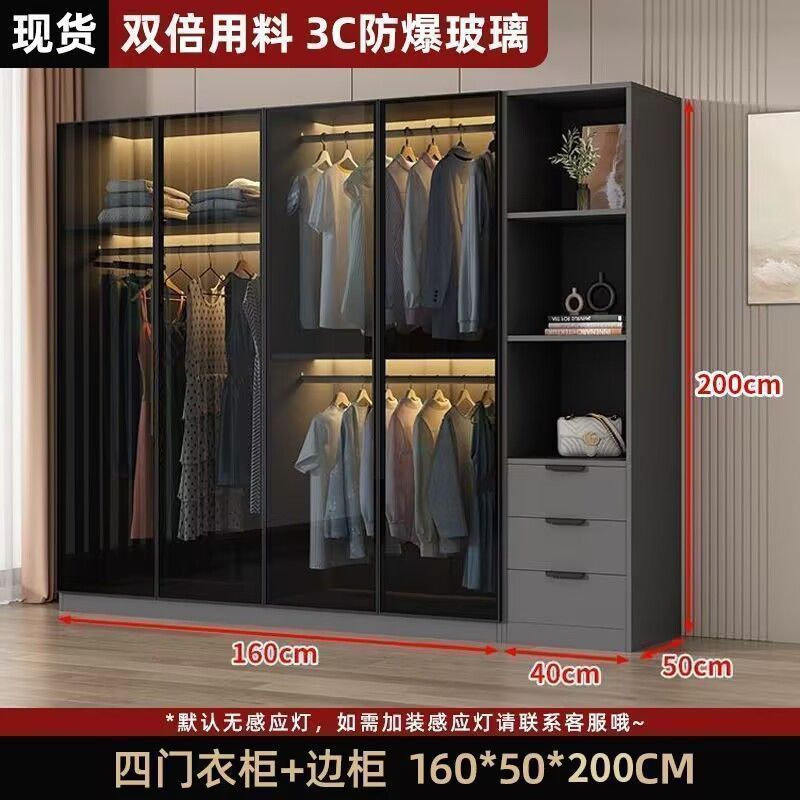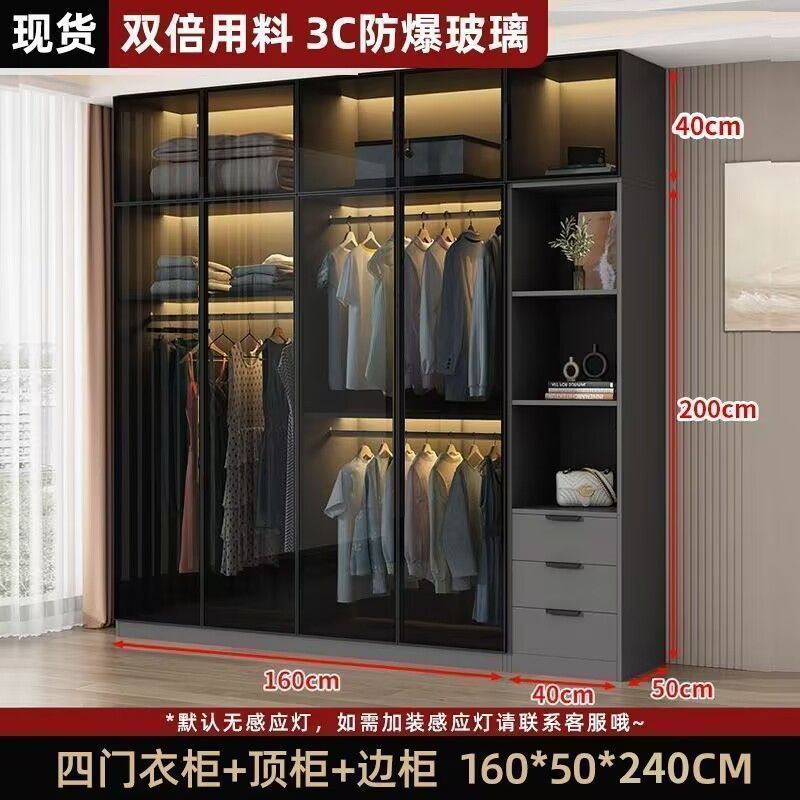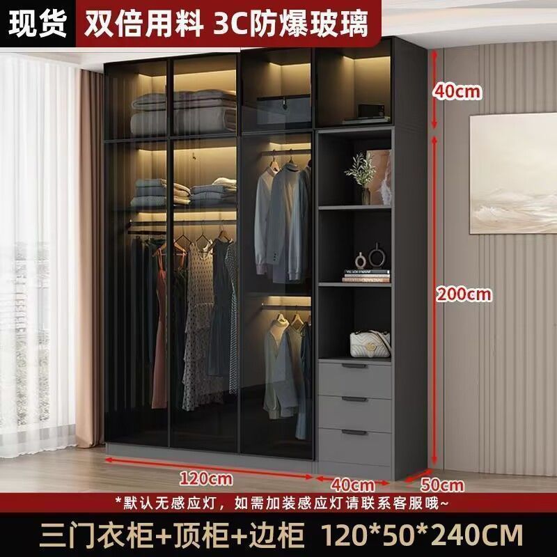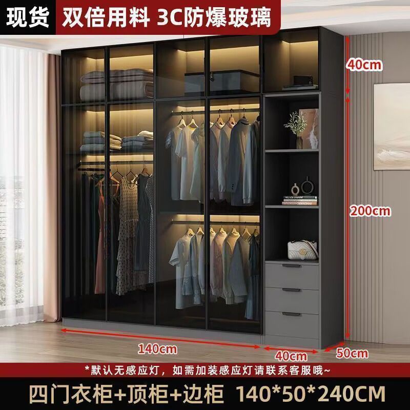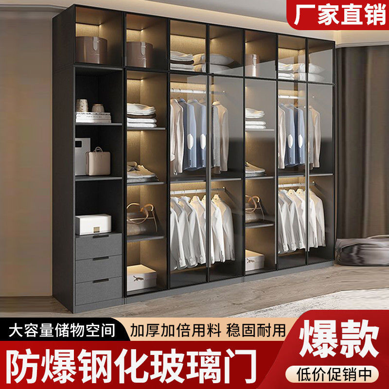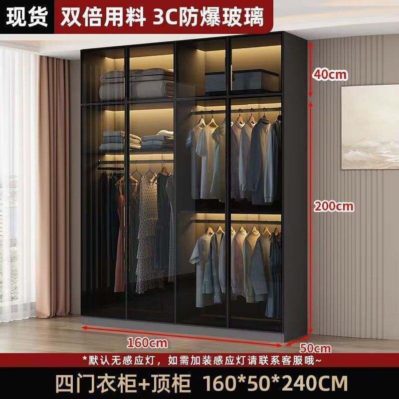 가벼운 고급 옷장 홈 침실 단단한 나무 작은 아파트 옷장 현대 간단한 스토리지 캐비닛 설치가 필요없는 유리 캐비닛스토어 가기