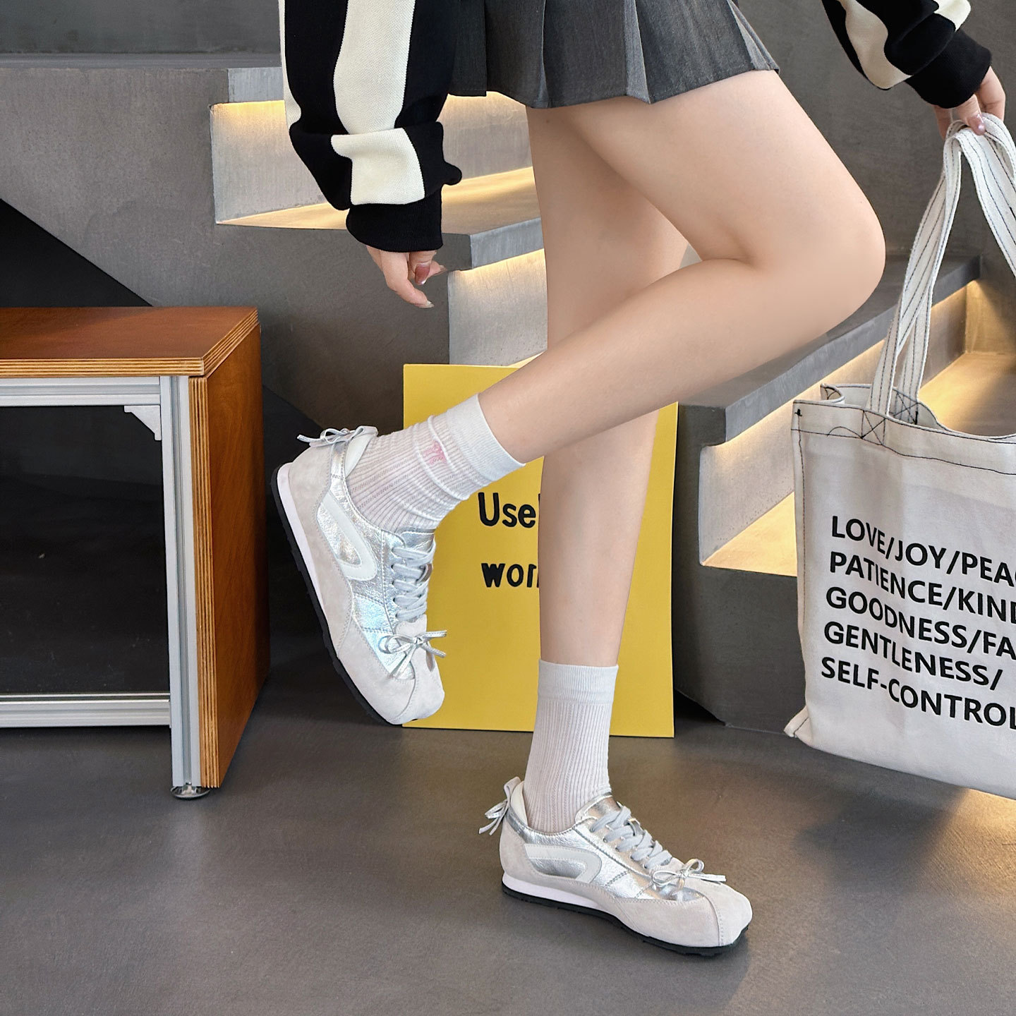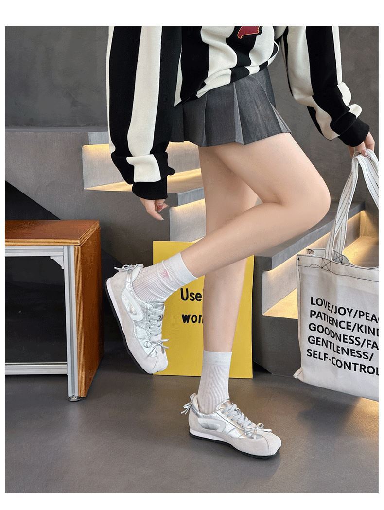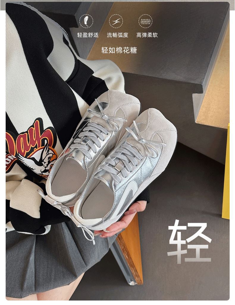 [이상한 아름다움] 여성용 애플 헤드 가죽 운동화 2025 가을 신작 포레스트 검프 슈즈 스포츠 및 레저 육군 훈련 신발