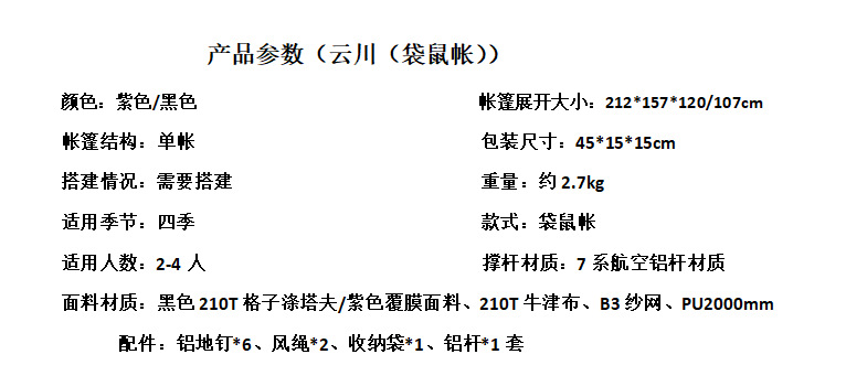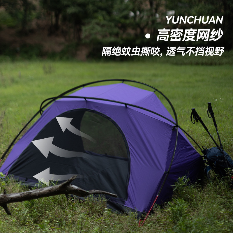 야외 보라색 Yunchuan 텐트 캥거루 내부 텐트 휴대용 건설 비바람에 견디는 환기 그늘 텐트 야외 캠핑 텐트