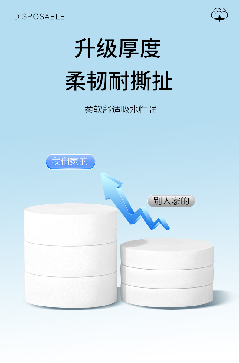일회용 세안 수건, 두껍고 확대된 여행 필수품, 개별 포장된 일회용 압축 수건 및 목욕 수건스토어 가기