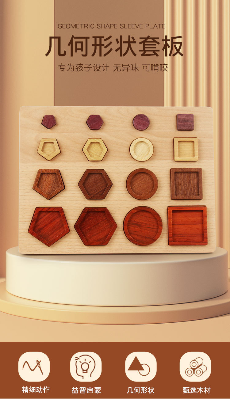 나무 몬테소리 기하학적 모양 매칭 인지 손잡이 패널 어린이 조기 교육 지적 발달 교육 빌딩 블록 장난감