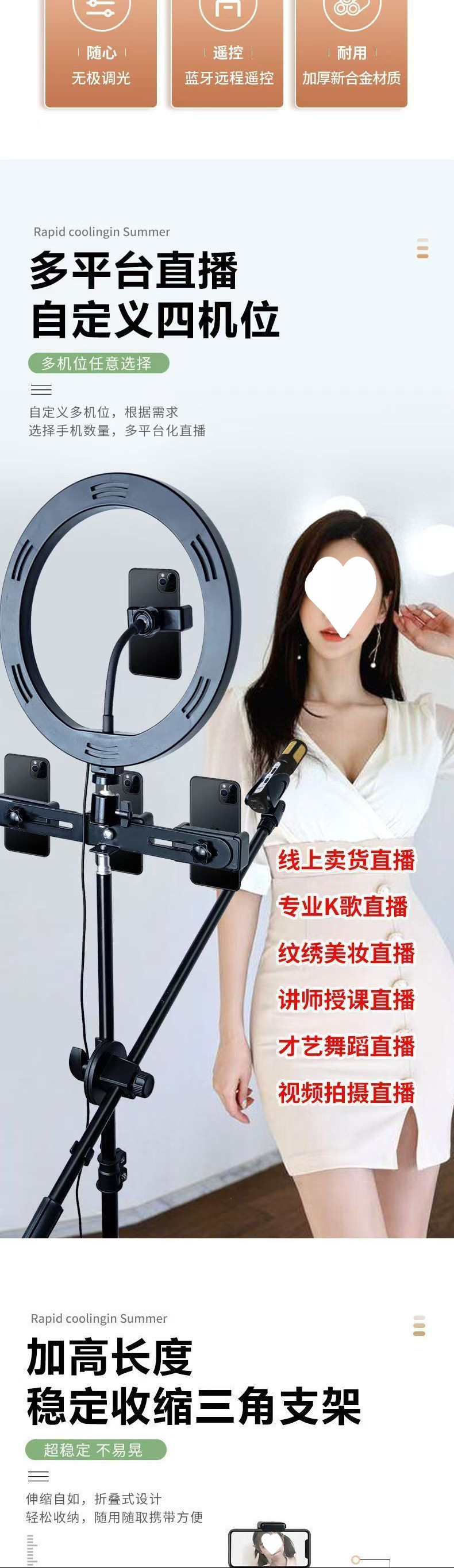 휴대폰 라이브 방송 스탠드, 촬영용 특수 셀카봉, 플로어 스탠딩 삼각대, 보조광이 포함된 일체형 삼각대 스탠드스토어 가기