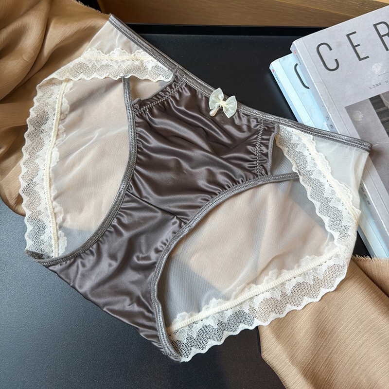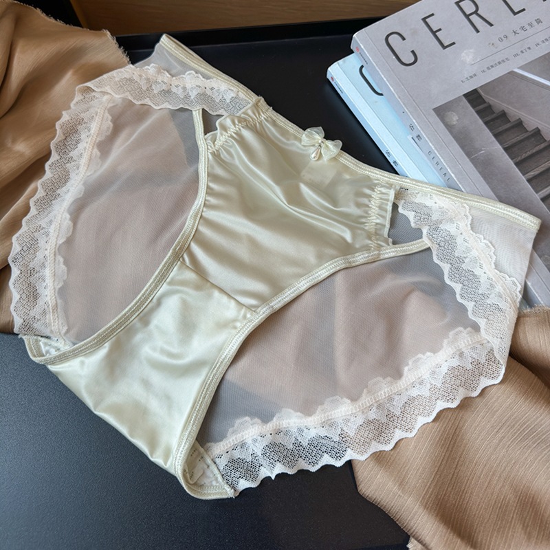 여성을위한 프랑스 레이스 속옷 하이 엔드 섹시한 2025 새로운 원활한 얼음 실크 새틴 얇은 메쉬 삼각형 반바지
