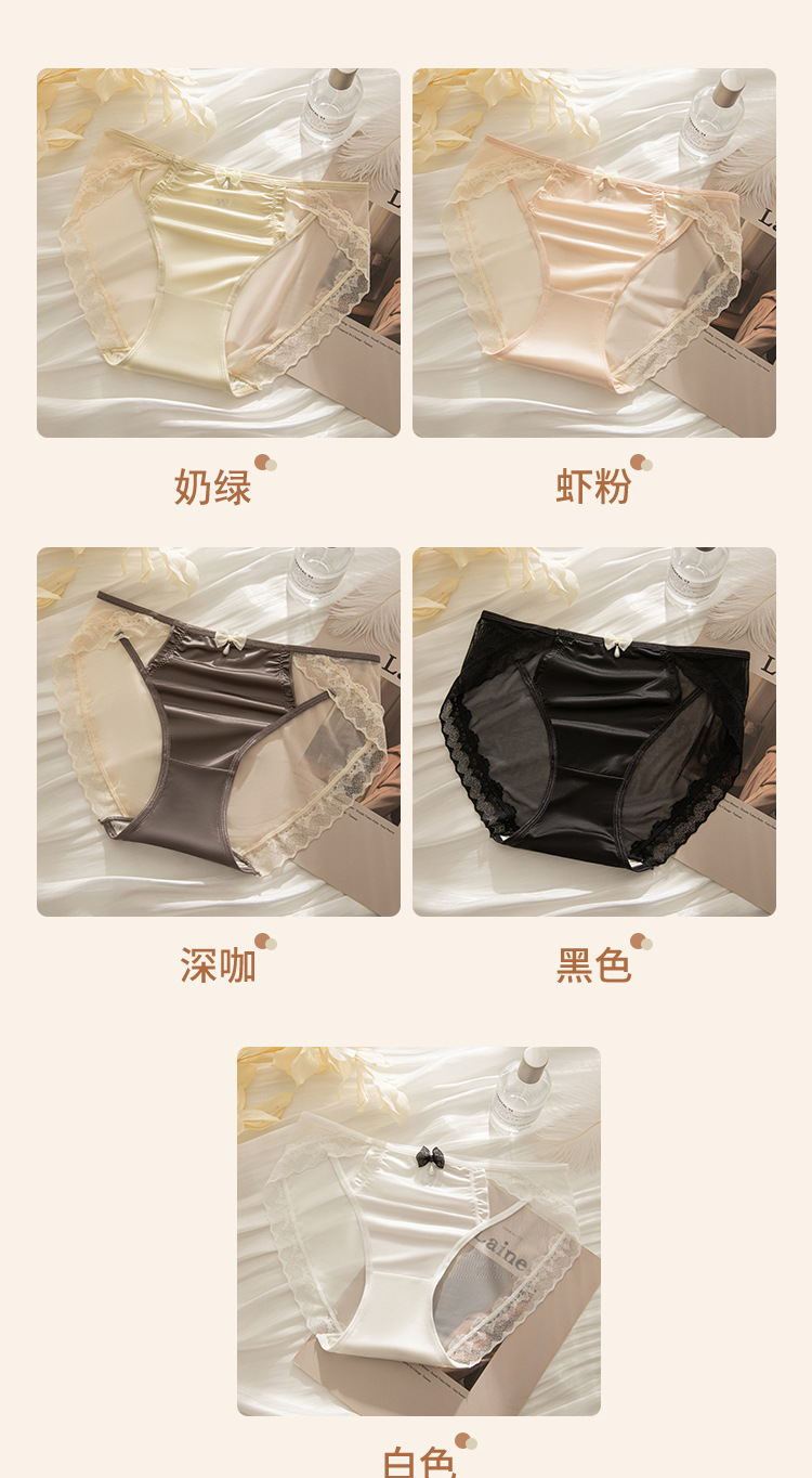 여성을위한 프랑스 레이스 속옷 하이 엔드 섹시한 2025 새로운 원활한 얼음 실크 새틴 얇은 메쉬 삼각형 반바지스토어 가기