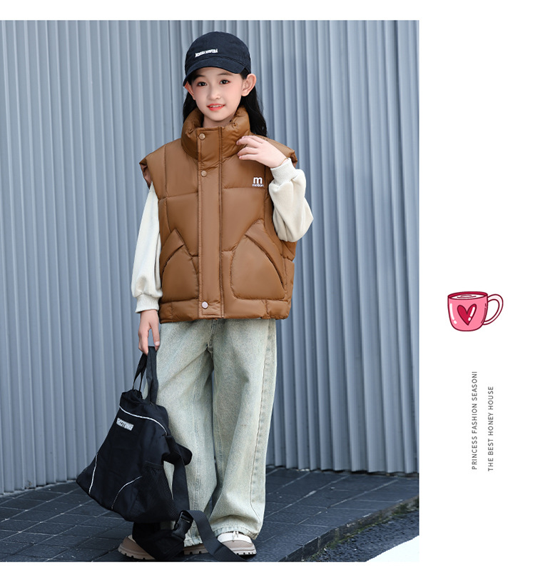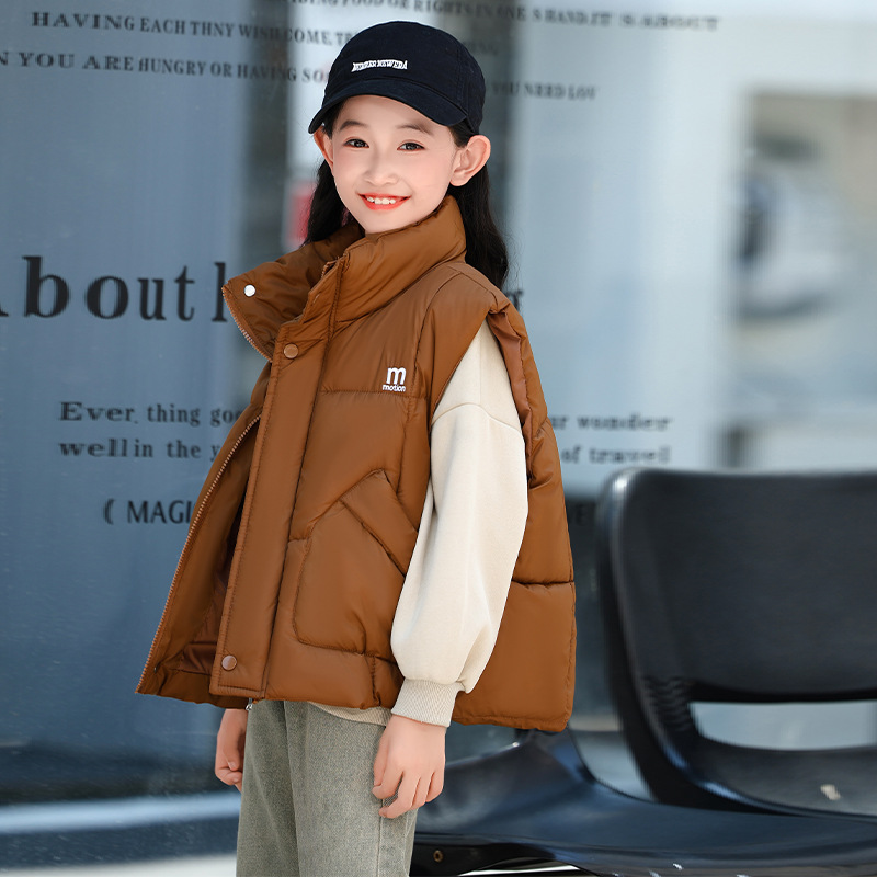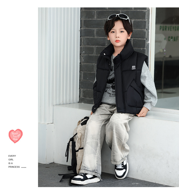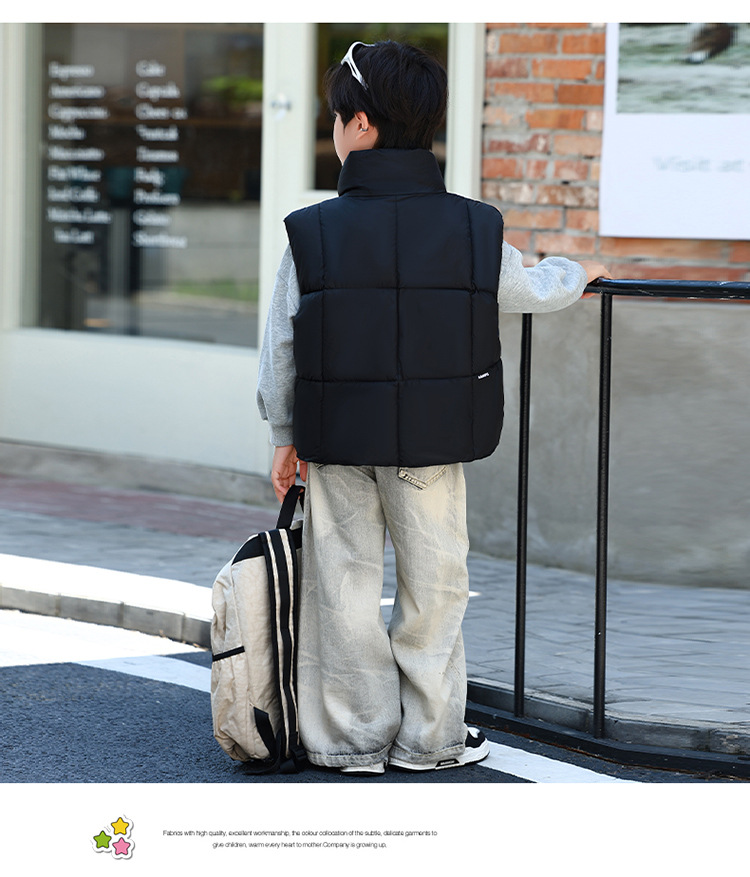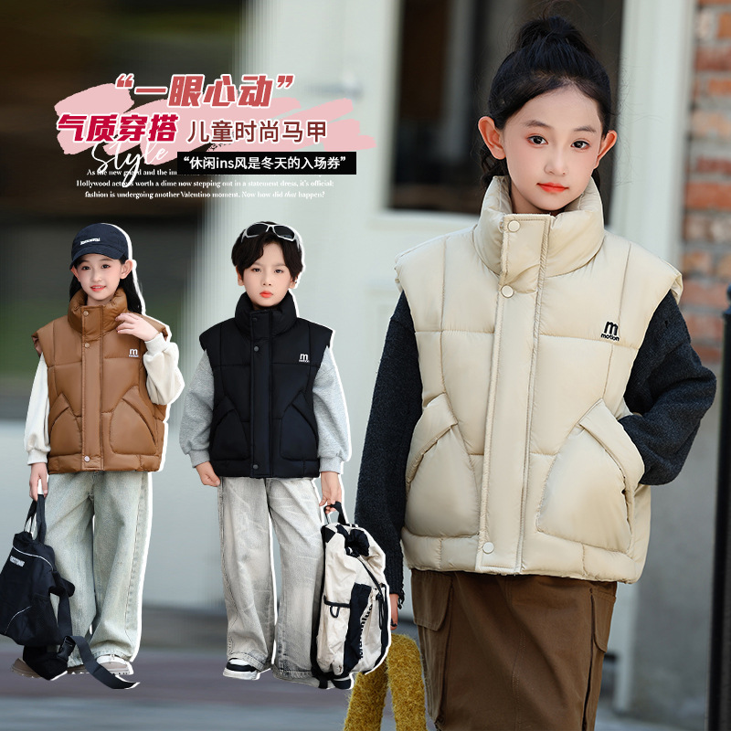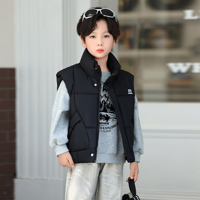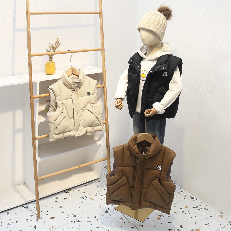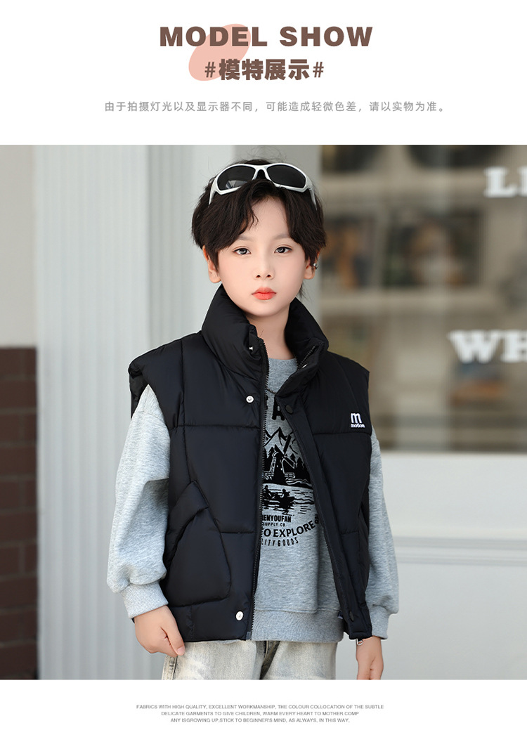 가을 겨울 새로운 스타일의 남학생과 여학생을 위한 조끼, 두꺼운 스탠드 칼라 조끼, 중대형 아동용 한국식 서양식 조끼, 아동용 조끼스토어 가기