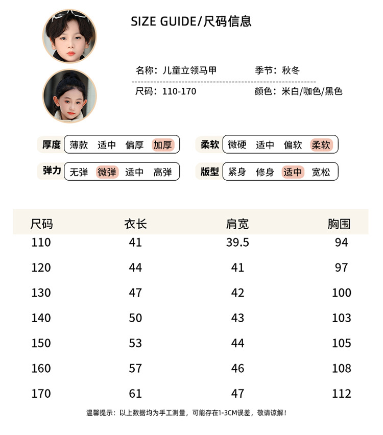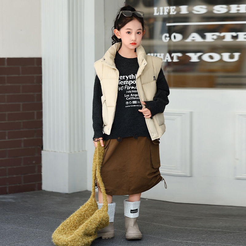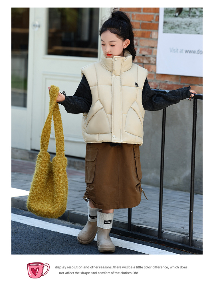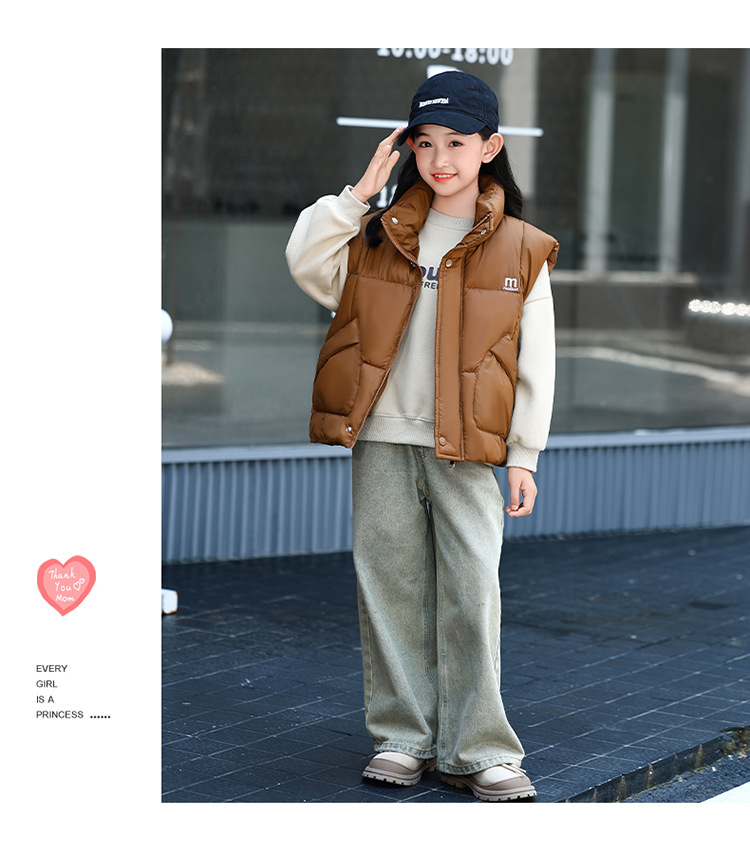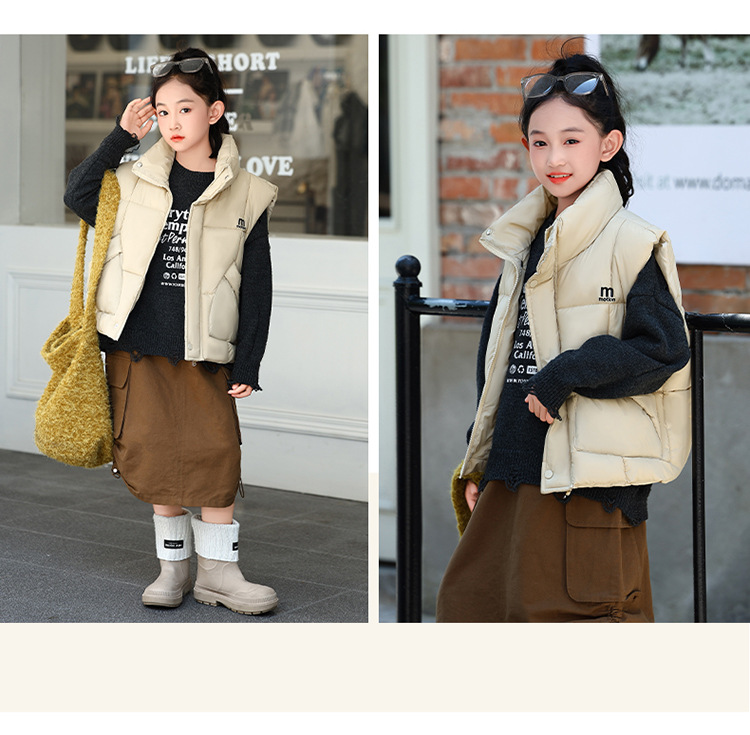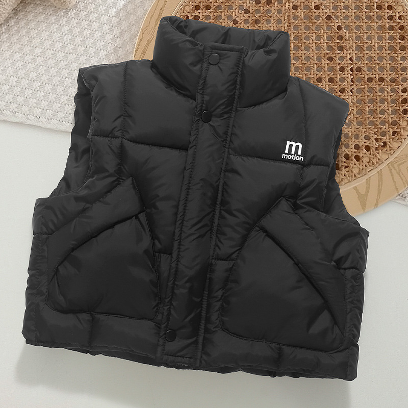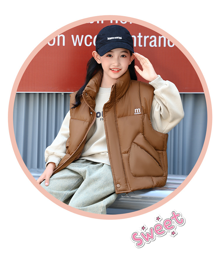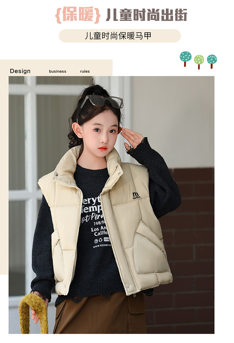 가을 겨울 새로운 스타일의 남학생과 여학생을 위한 조끼, 두꺼운 스탠드 칼라 조끼, 중대형 아동용 한국식 서양식 조끼, 아동용 조끼스토어 가기