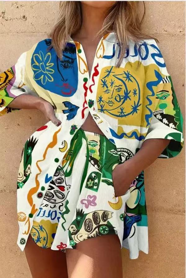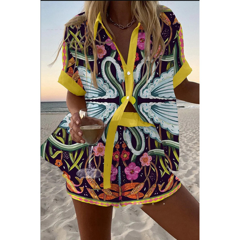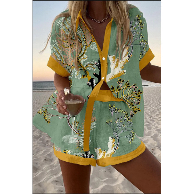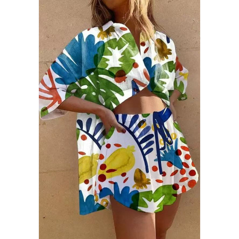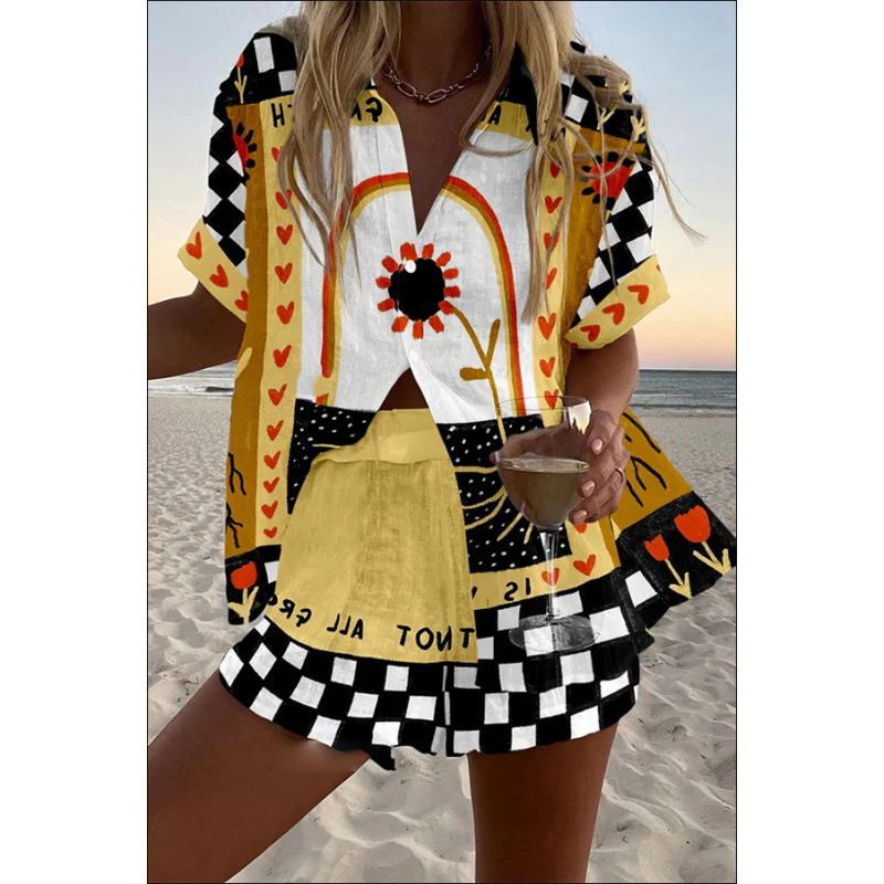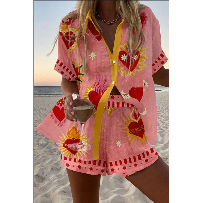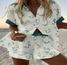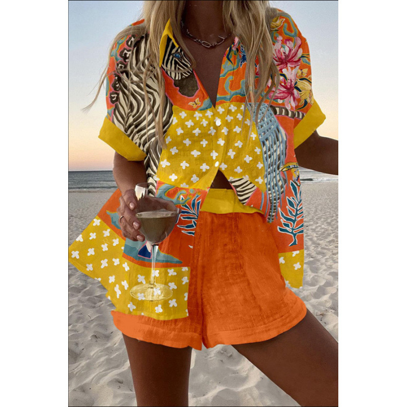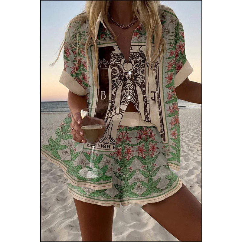 2025 봄 여름 아마존 유럽과 미국의 국경 간 패션 여성 의류 프린트 루즈 반바지 반팔 셔츠 POD 사용자 정의스토어 가기