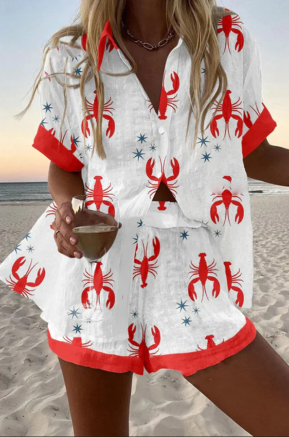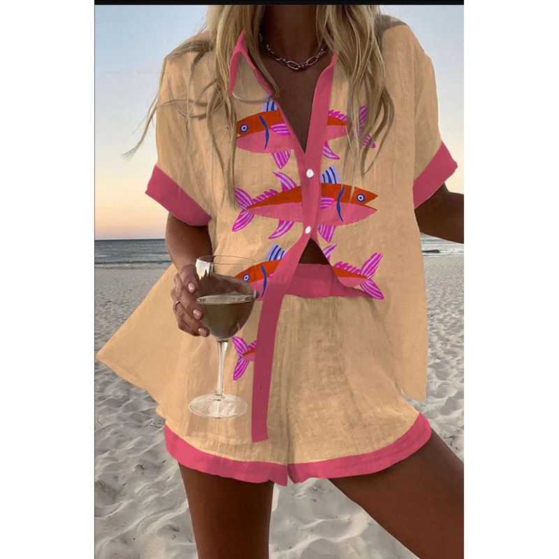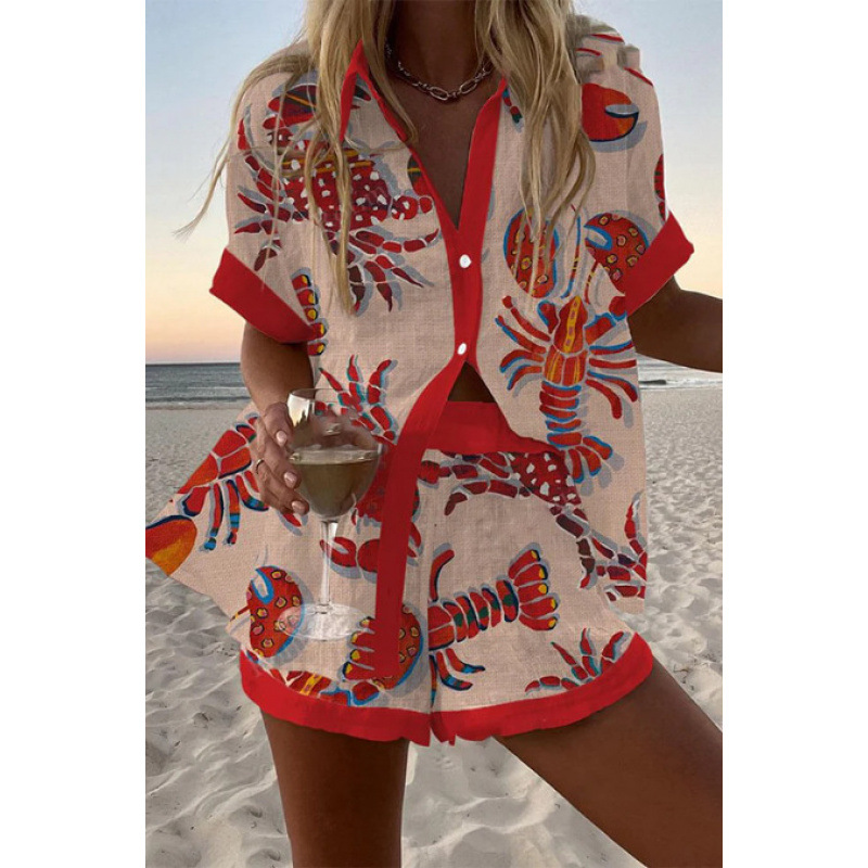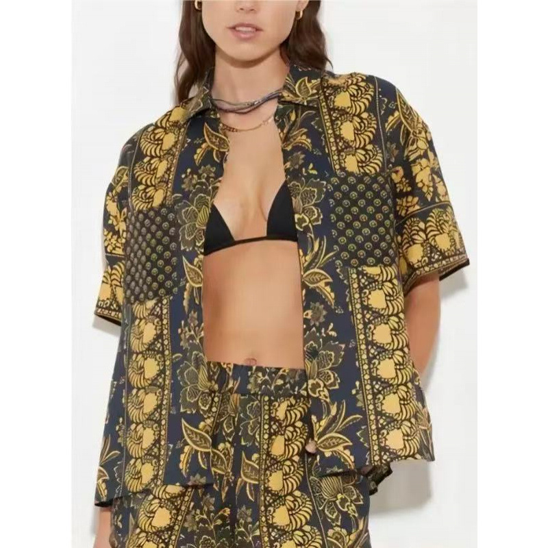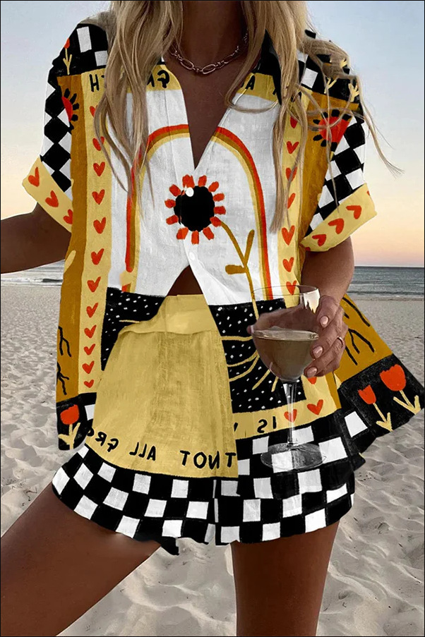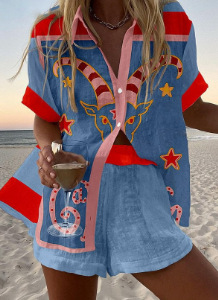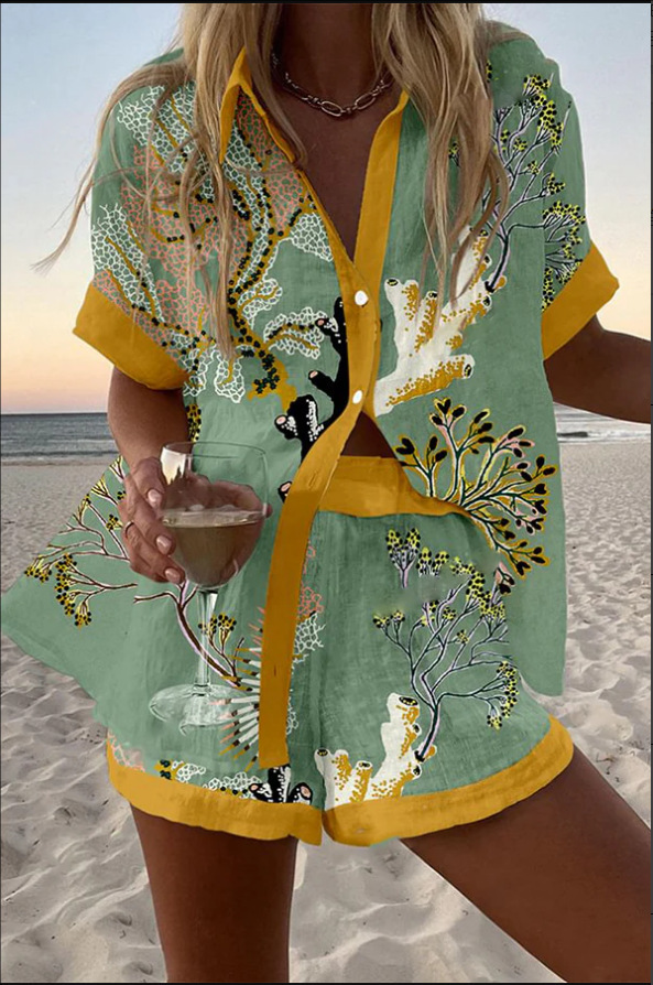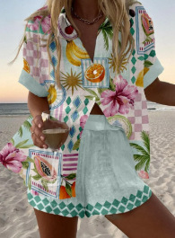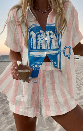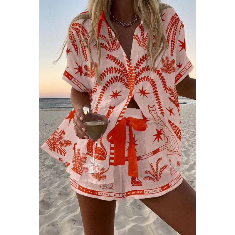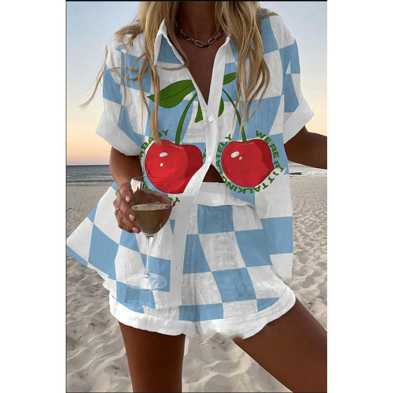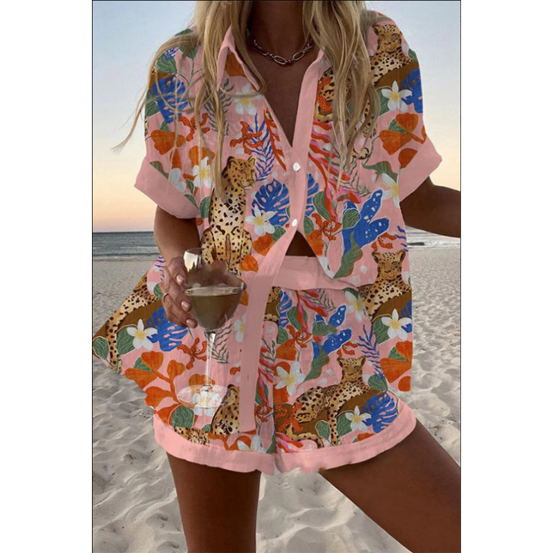 2025 봄 여름 아마존 유럽과 미국의 국경 간 패션 여성 의류 프린트 루즈 반바지 반팔 셔츠 POD 사용자 정의스토어 가기