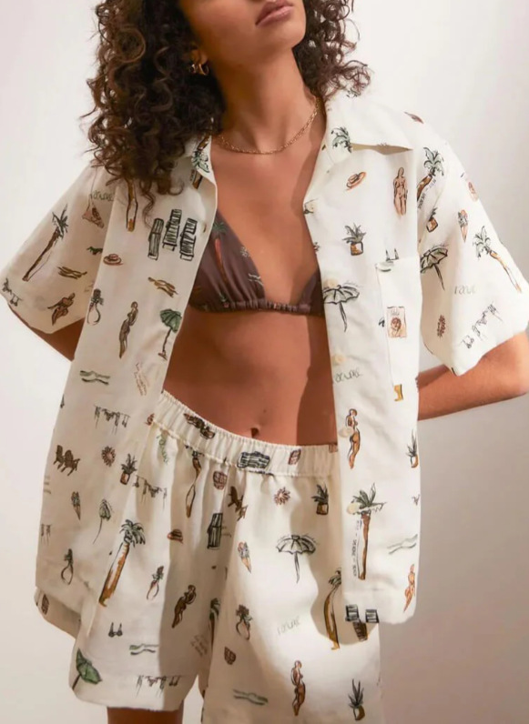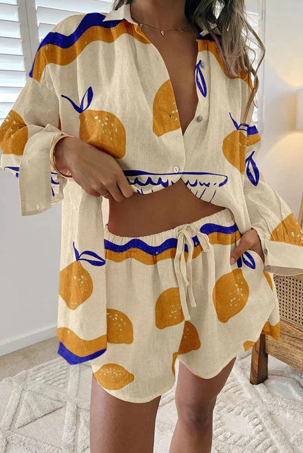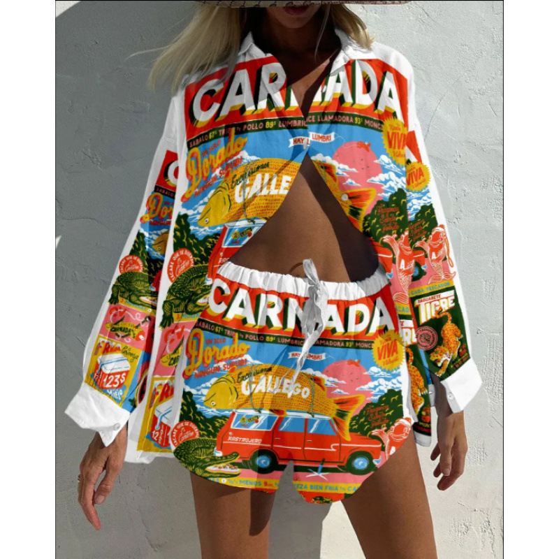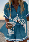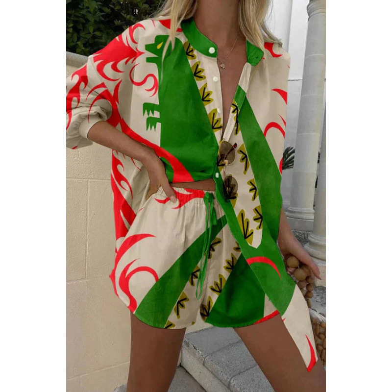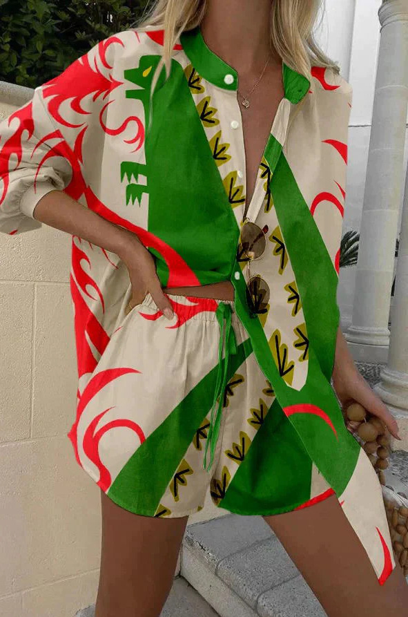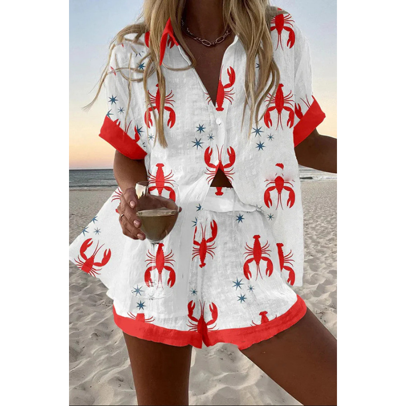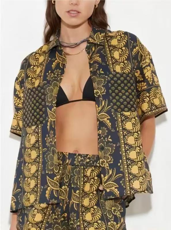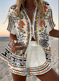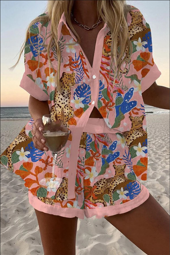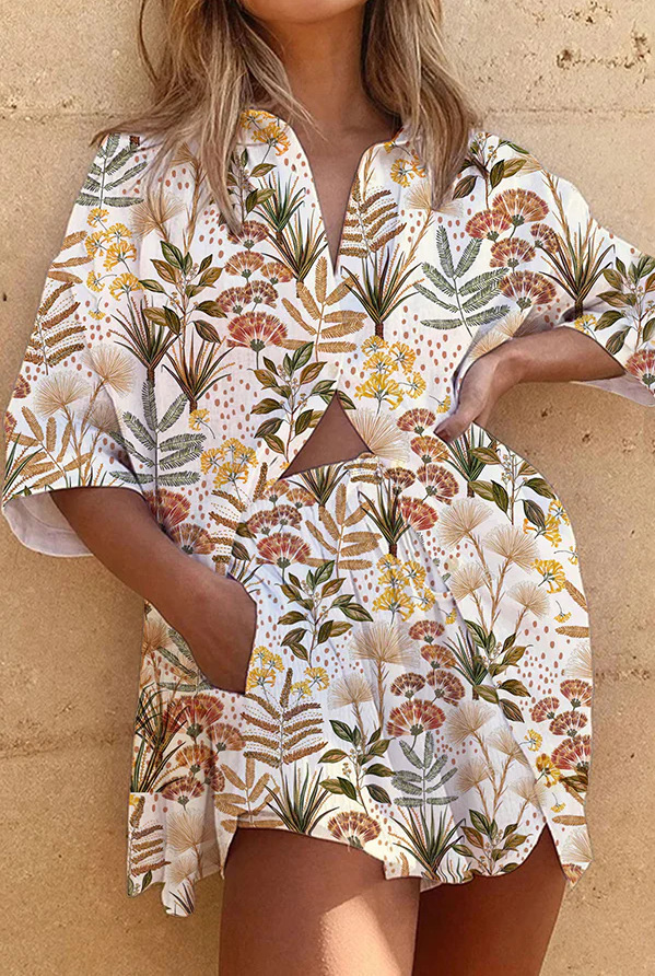2025 봄 여름 아마존 유럽과 미국의 국경 간 패션 여성 의류 프린트 루즈 반바지 반팔 셔츠 POD 사용자 정의스토어 가기