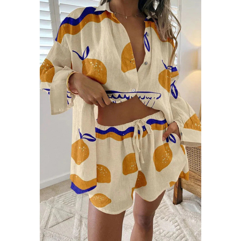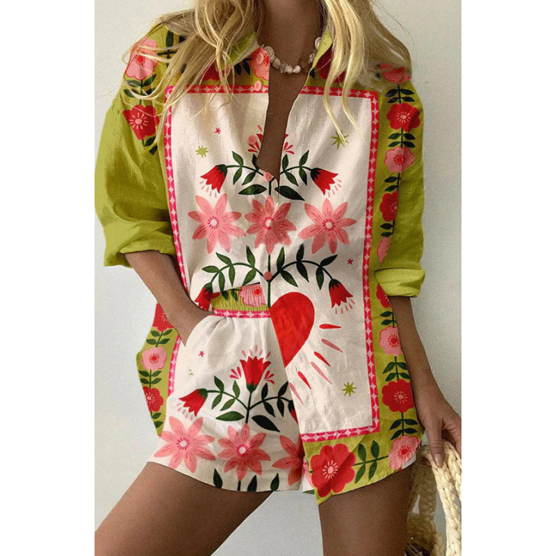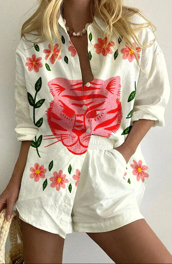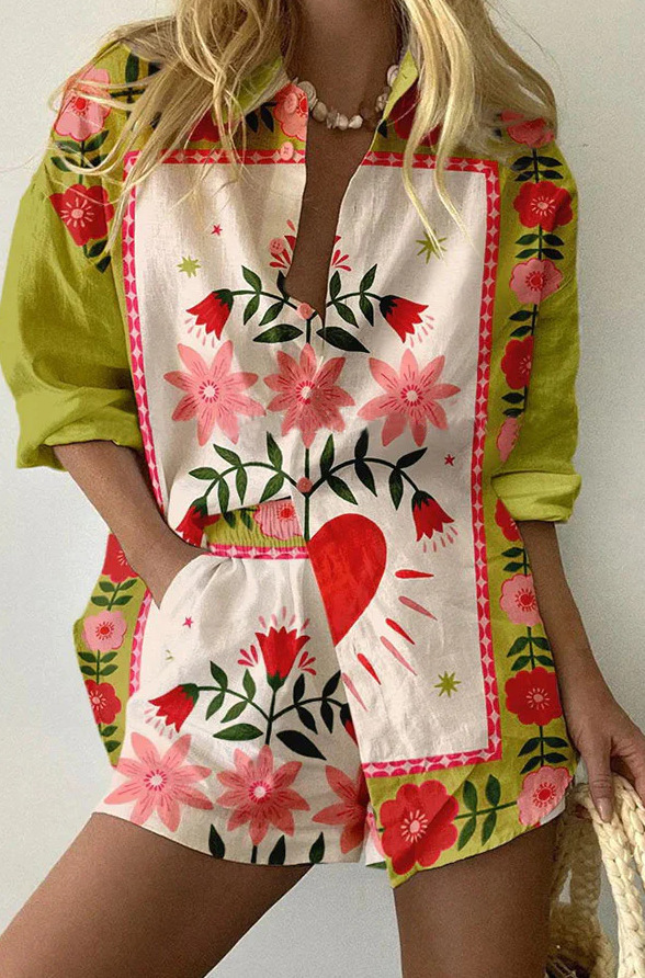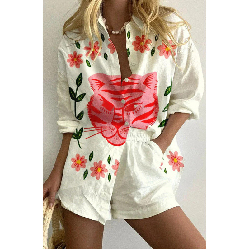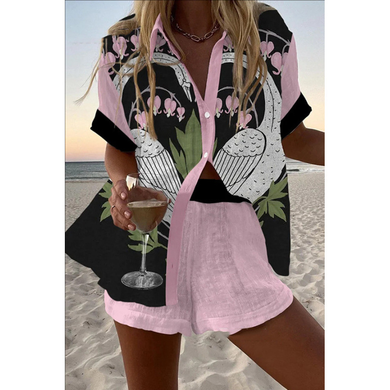 2025 봄 여름 아마존 유럽과 미국의 국경 간 패션 여성 의류 프린트 루즈 반바지 반팔 셔츠 POD 사용자 정의