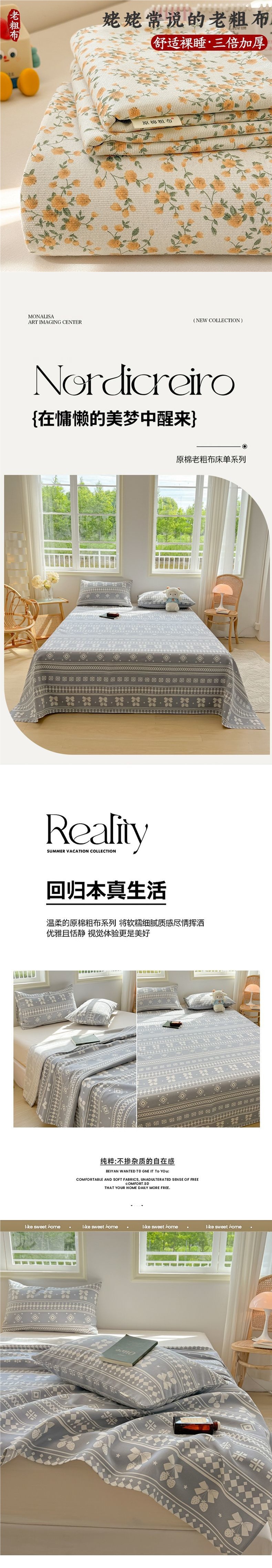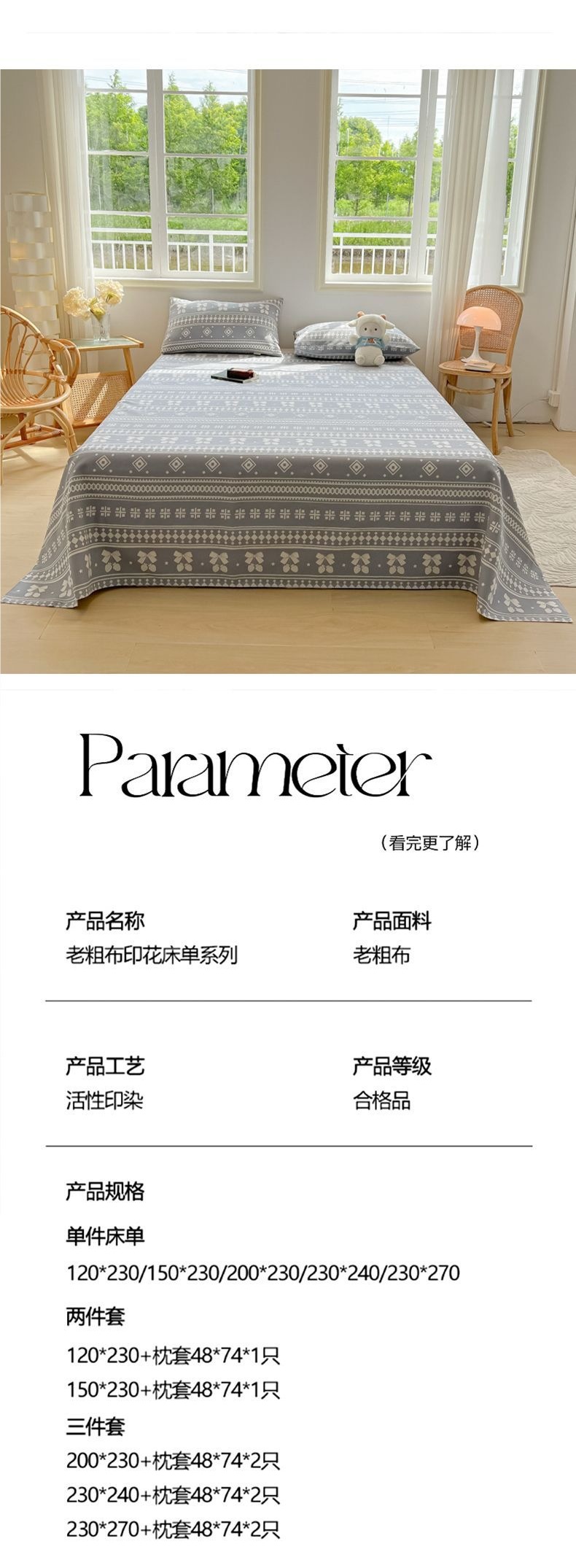 린넨 올드 스타일 면 100 올드 두꺼운 침대 시트 다다미 3피스 매트 베개 커버 싱글 제품스토어 가기
