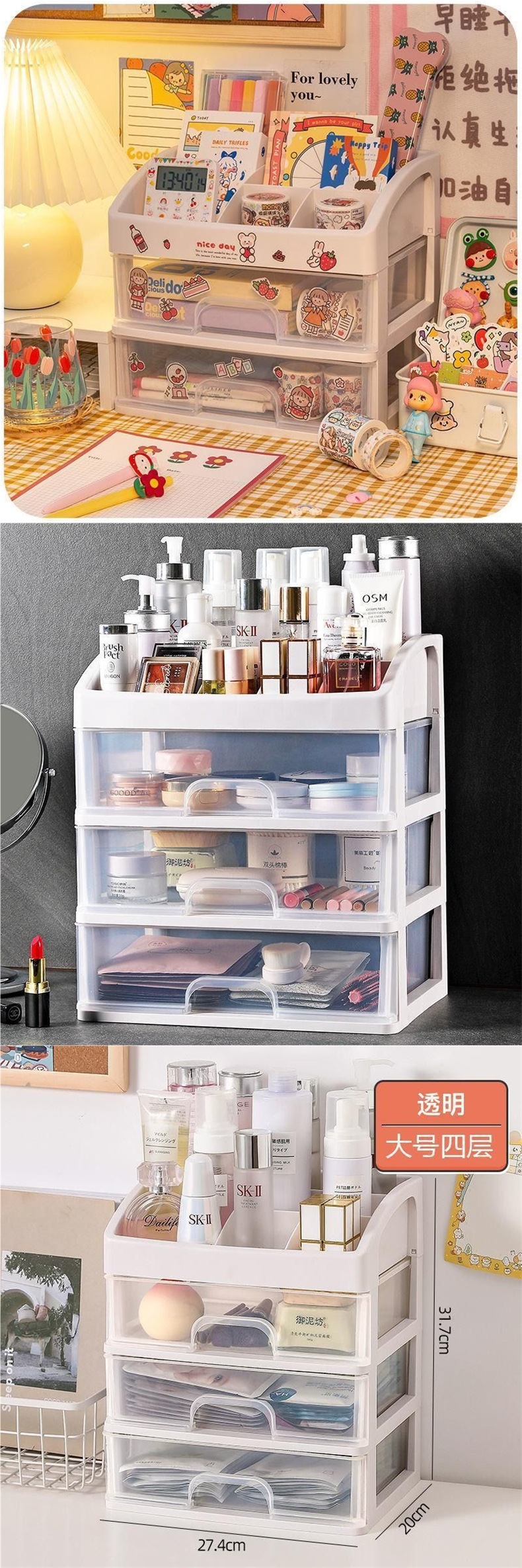 데스크탑 화장품 보관함 플라스틱 보관함 서랍형 보석함 화장대 보관함 투명 정리함