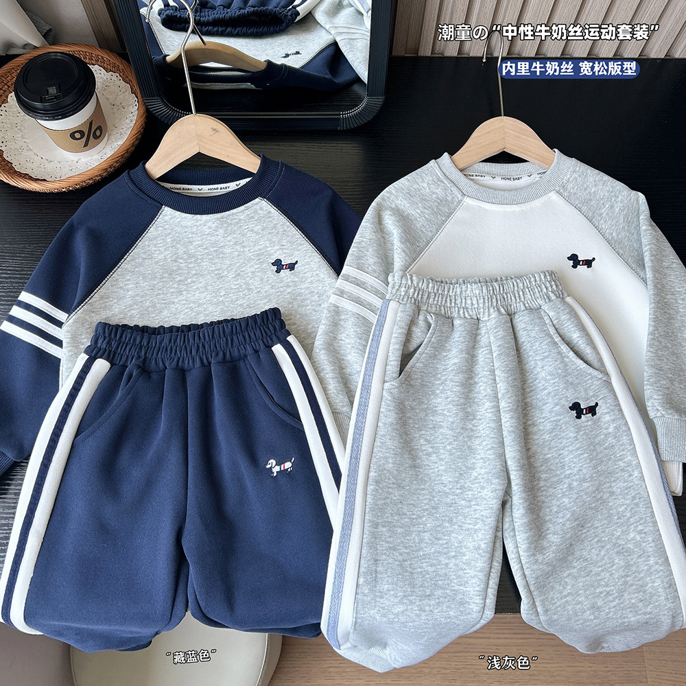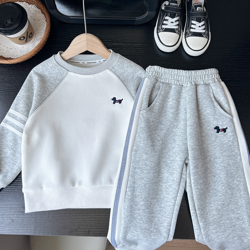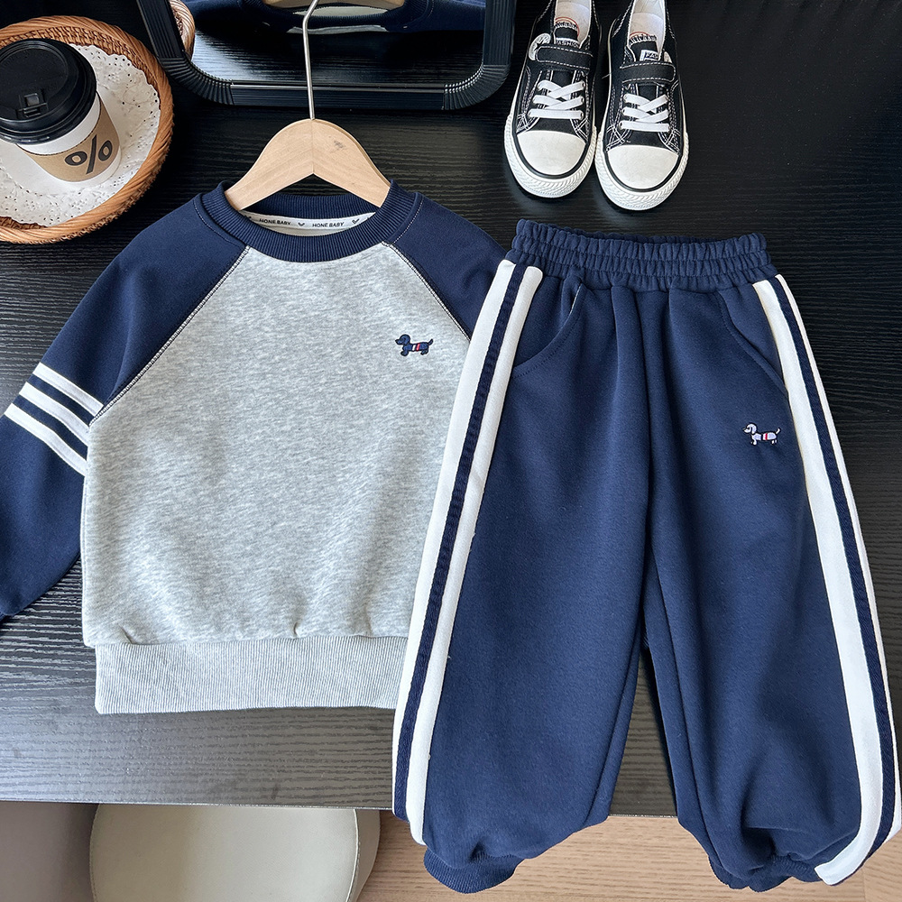 2025 새로운 가을 아동 의류 소년 어린이 소년 라글란 슬리브 스웨트 팬츠 정장 스웨트 정장 도매스토어 가기