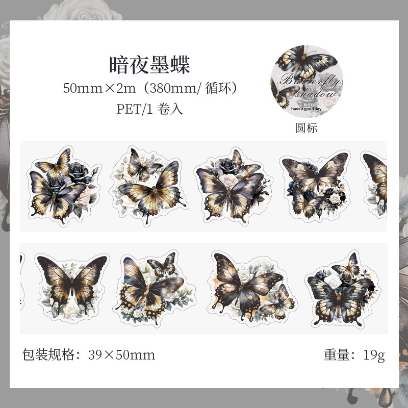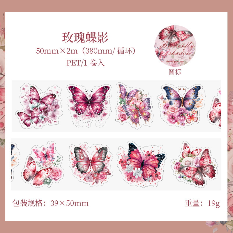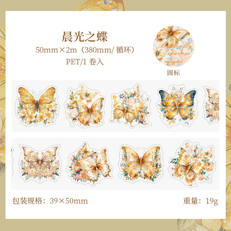 좋은 하루 PET 테이프 판타지 나비 그림자 시리즈 나비 커팅 다이 핸드북 장식 재료 사이클 스티커 6 스타일스토어 가기