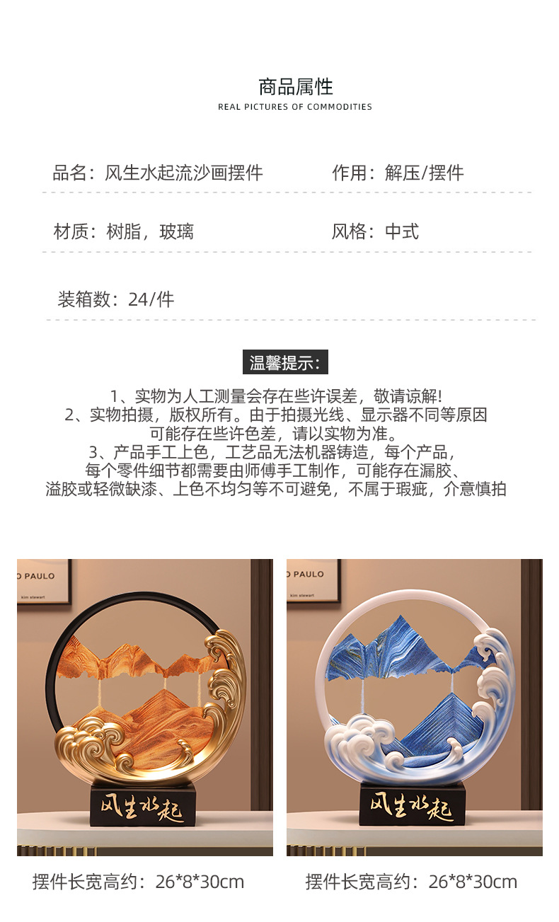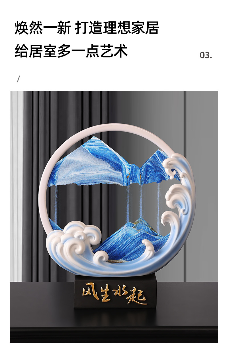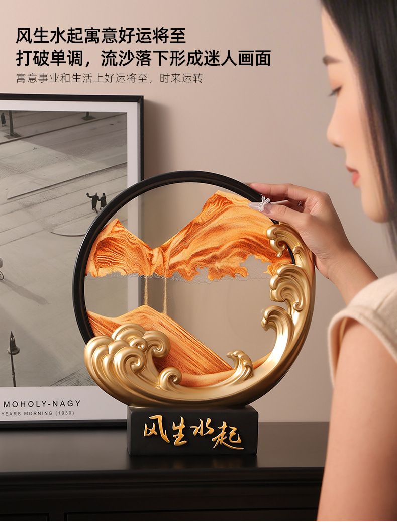 家居创意放轻松3D流沙画客厅装饰办公室酒柜树脂摆件沙漏工艺礼品