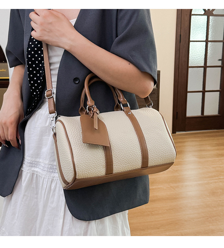 레트로 핸드 휴대용 보스턴 백 리치 패턴 크로스 바디 백 여성용 2025 새로운 하이 엔드 틈새 대비 색상 베개 가방