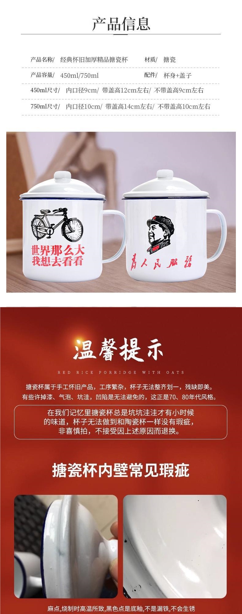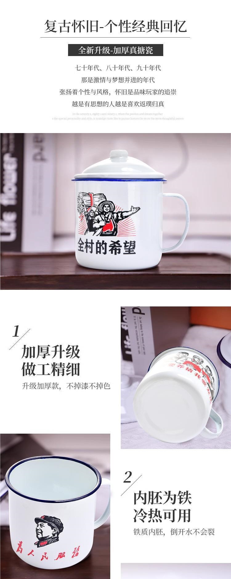 에나멜 컵, 뚜껑이 있는 향수 머그, 대용량 물컵, 소년용 구식 차병, 클래식 구직원 차스토어 가기