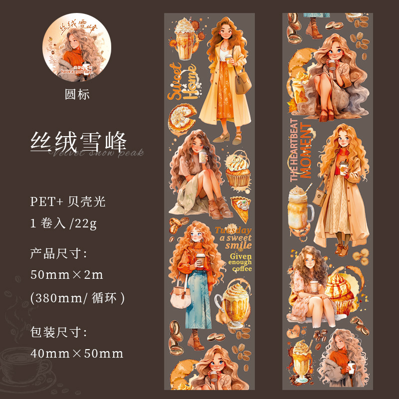 좋은 하루 PET 테이프 커피 소녀 시리즈 쉘 라이트 핸드북 장식 재료 사이클 스티커 6 스타일