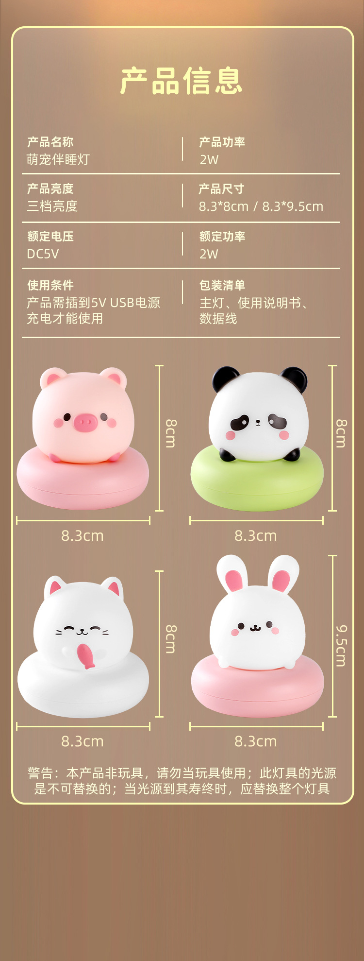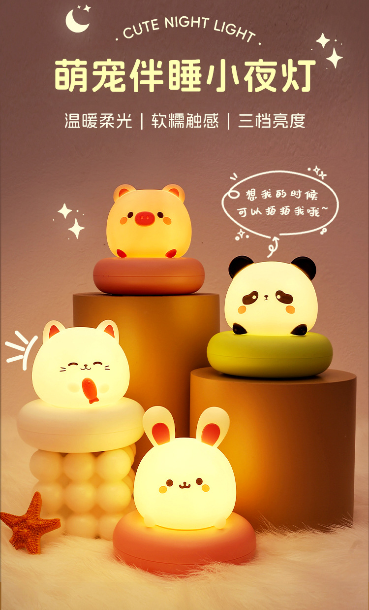 Ins 스타일 동물 패팅 센서 라이트 인기 동물 패팅 라이트 고양이 오리 곰 토끼 침대 옆 패팅 라이트