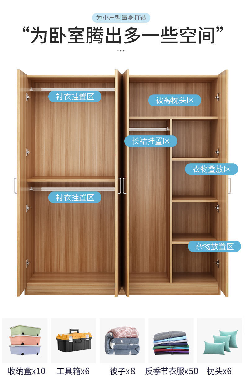 가정용 침실을 위한 경제적인 옷장, 현대적이고 단순한 임대 주택, 단단한 나무로 만든 간단한 조립식 보관 캐비닛