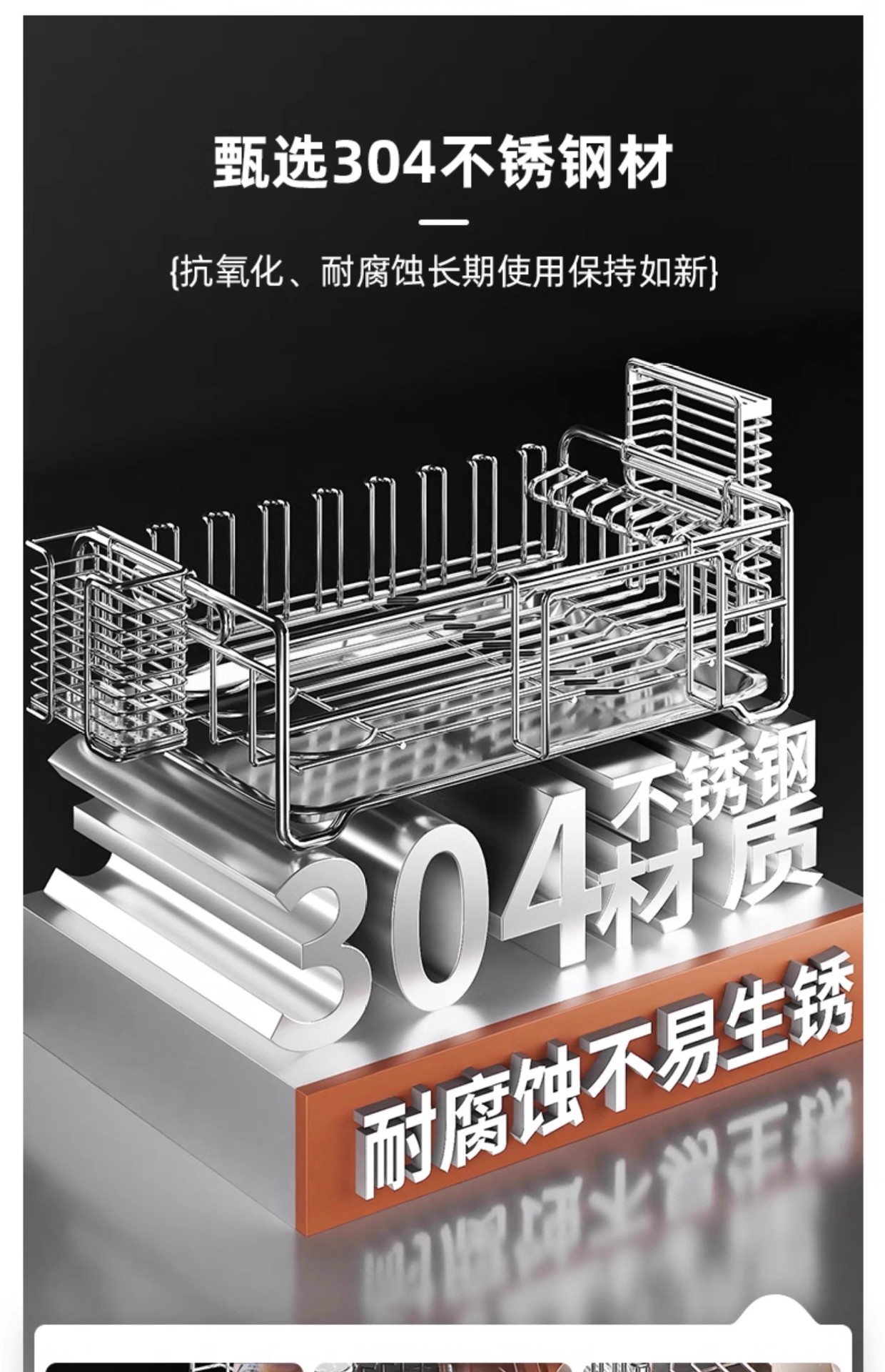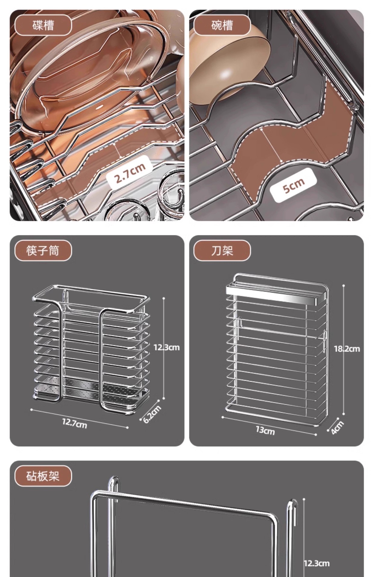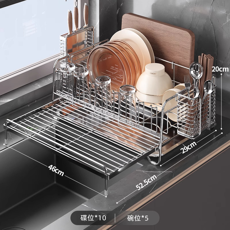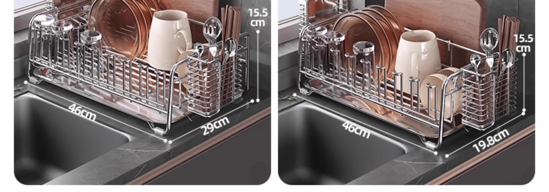 • [304 스테인리스] 46cm_메인랙 + 신축형 메쉬바구니 + 물받이 + 도마걸이 + 칼꽂이 + 젓가락, 수저통