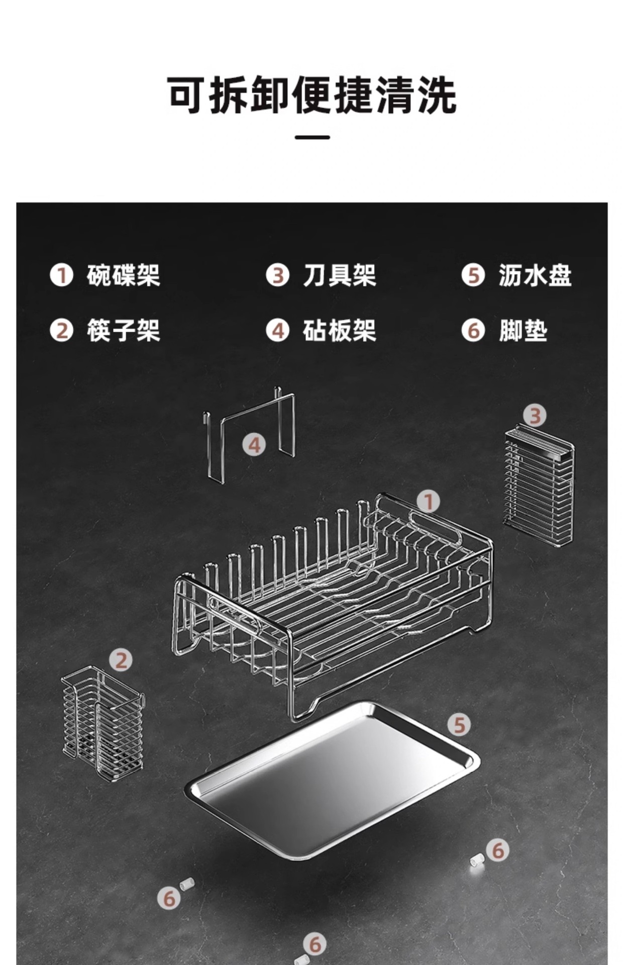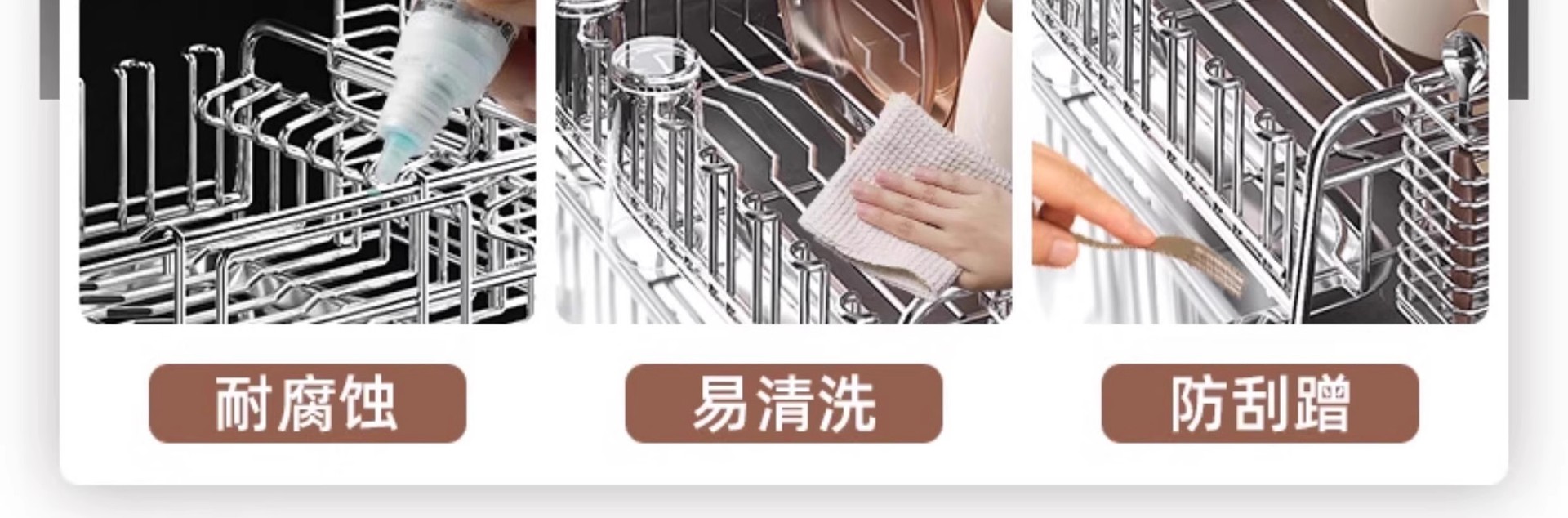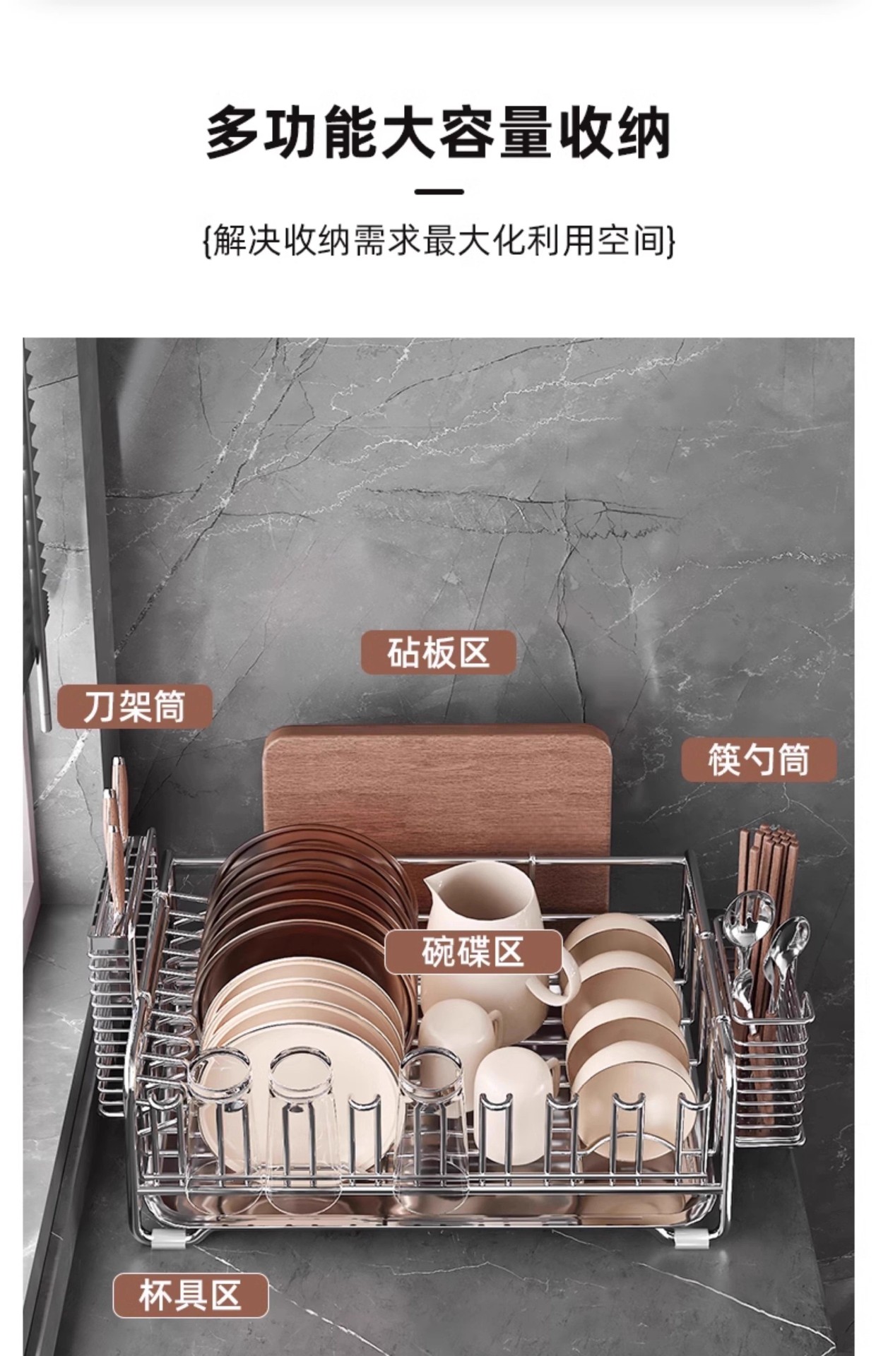 • [304 스테인리스] 46cm_메인랙 + 신축형 메쉬바구니 + 물받이 + 도마걸이 + 칼꽂이 + 젓가락, 수저통