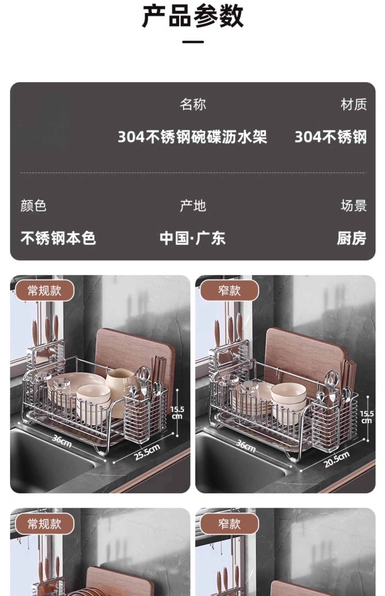304 스테인레스 스틸 접시 배수 랙 접시 보관 랙 배수 그릇 랙 그릇과 젓가락 보관 랙 작은 좁은 모양스토어 가기