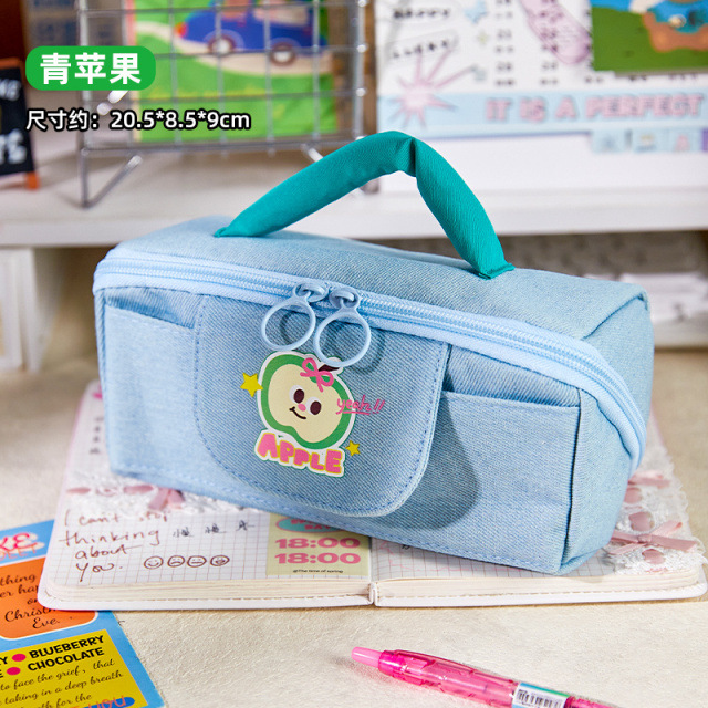 새로운 대비 색상 Apple 대용량 연필 가방, 고급스러운 다기능 문구 상자, 학생 틈새 소녀 문구 보관스토어 가기