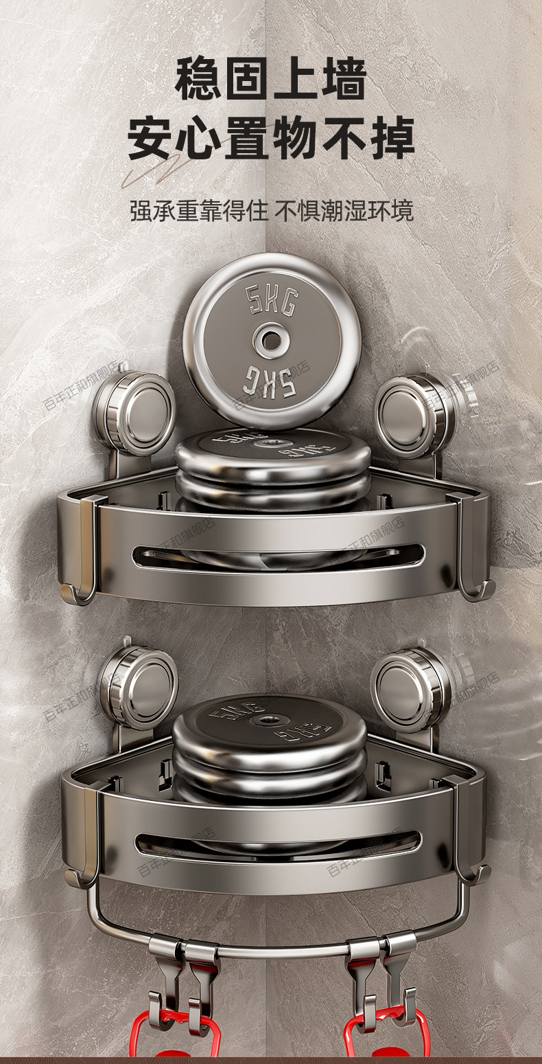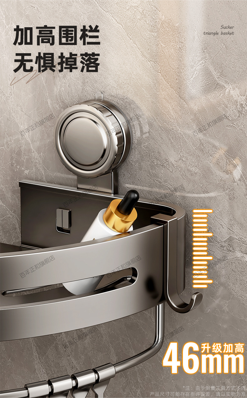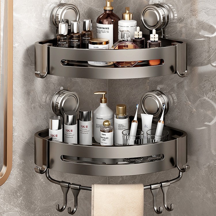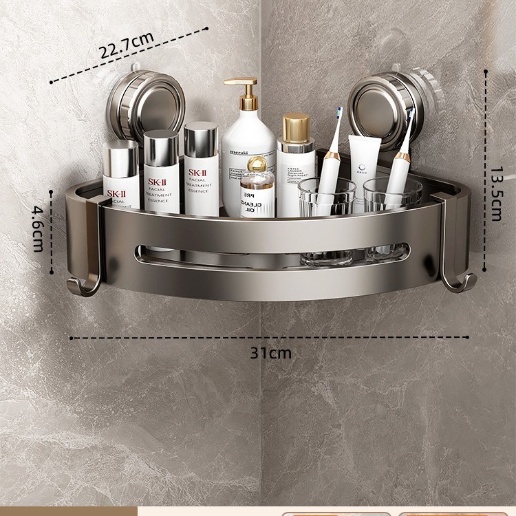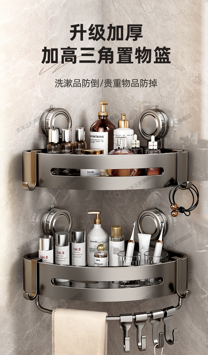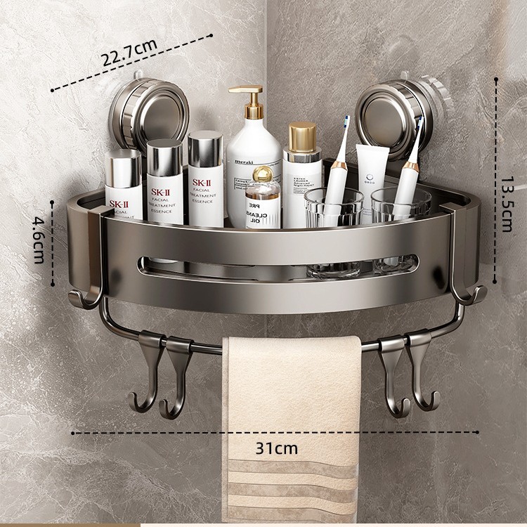 • [건그레이 더블 레이어] 막대 포함] 흡입 컵 삼각형 바구니 + 후크 8개