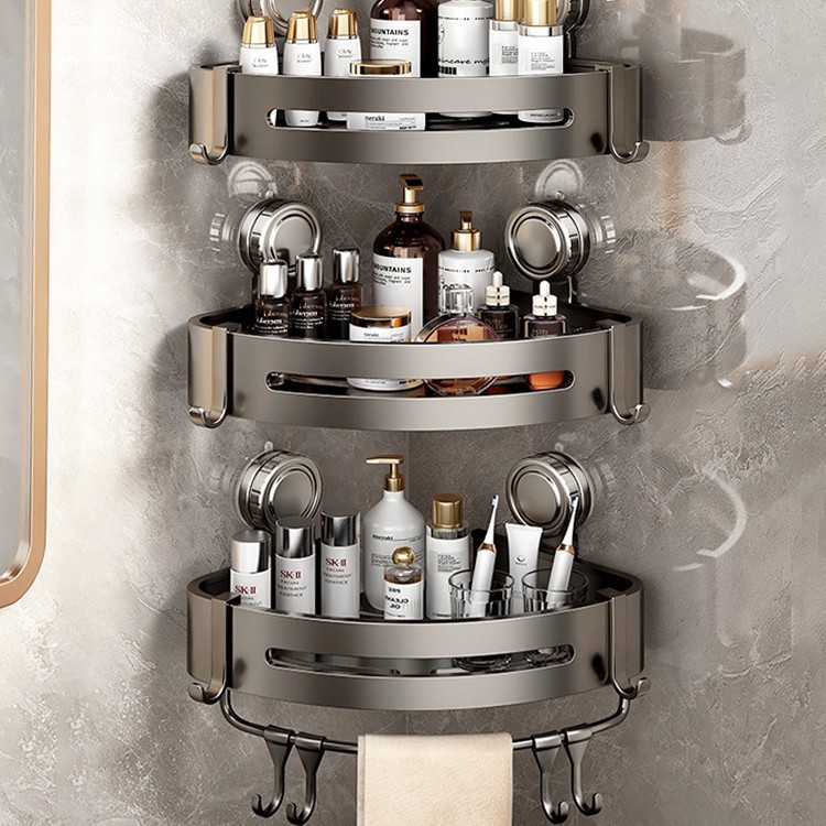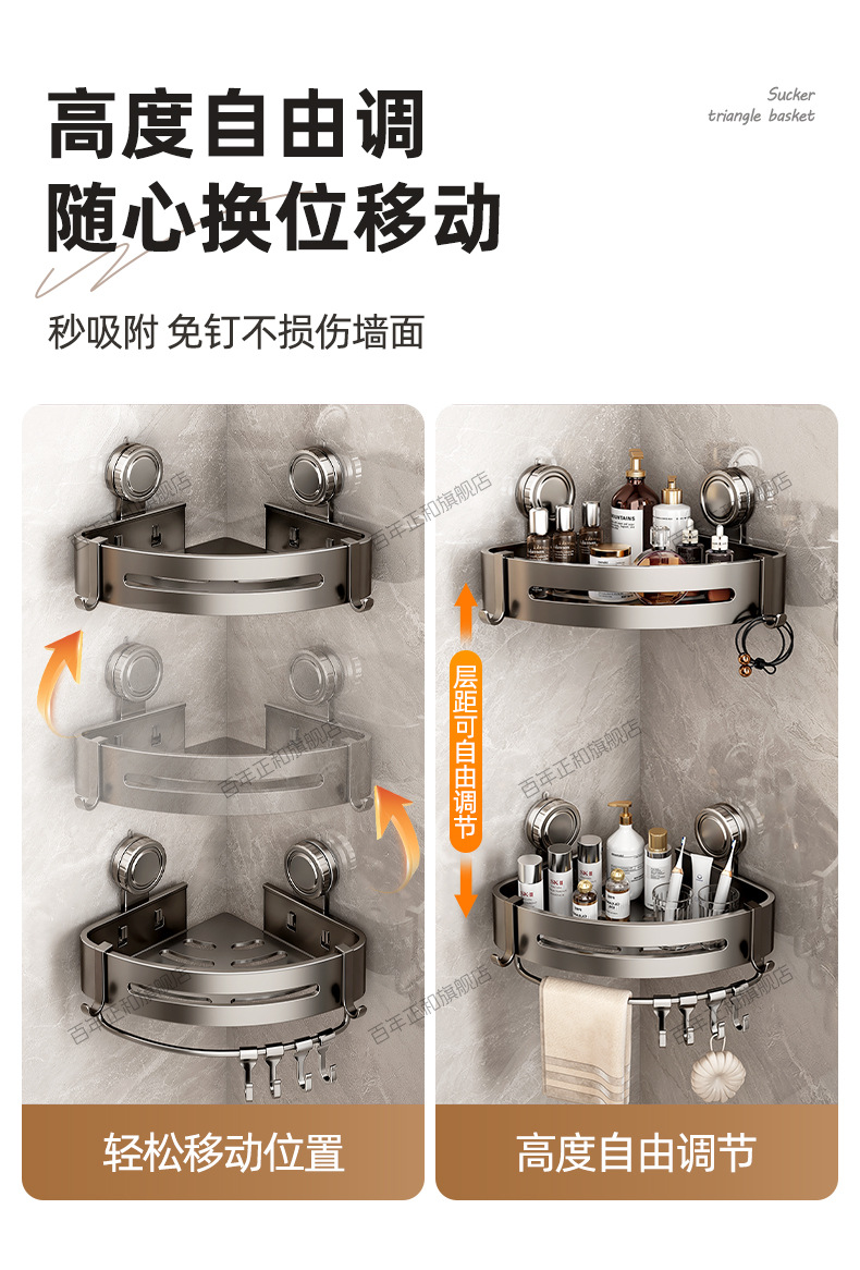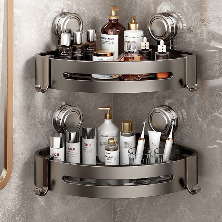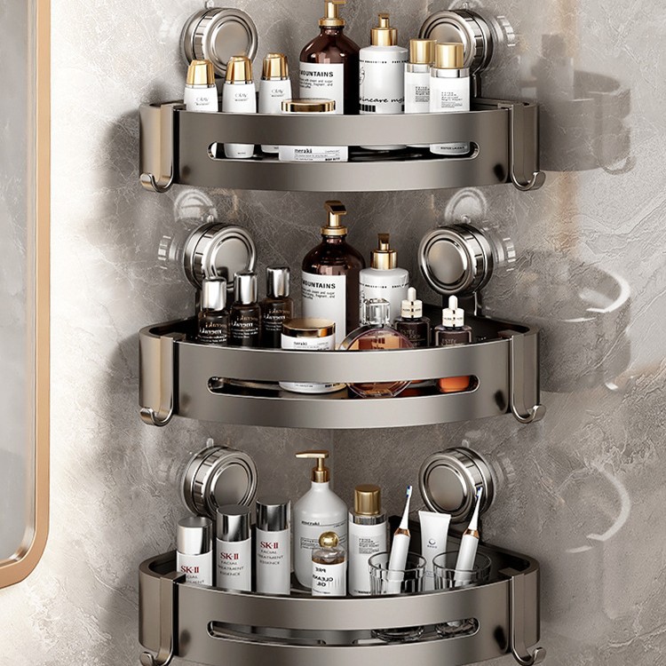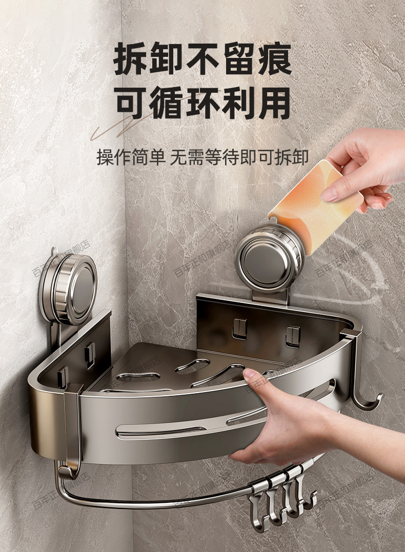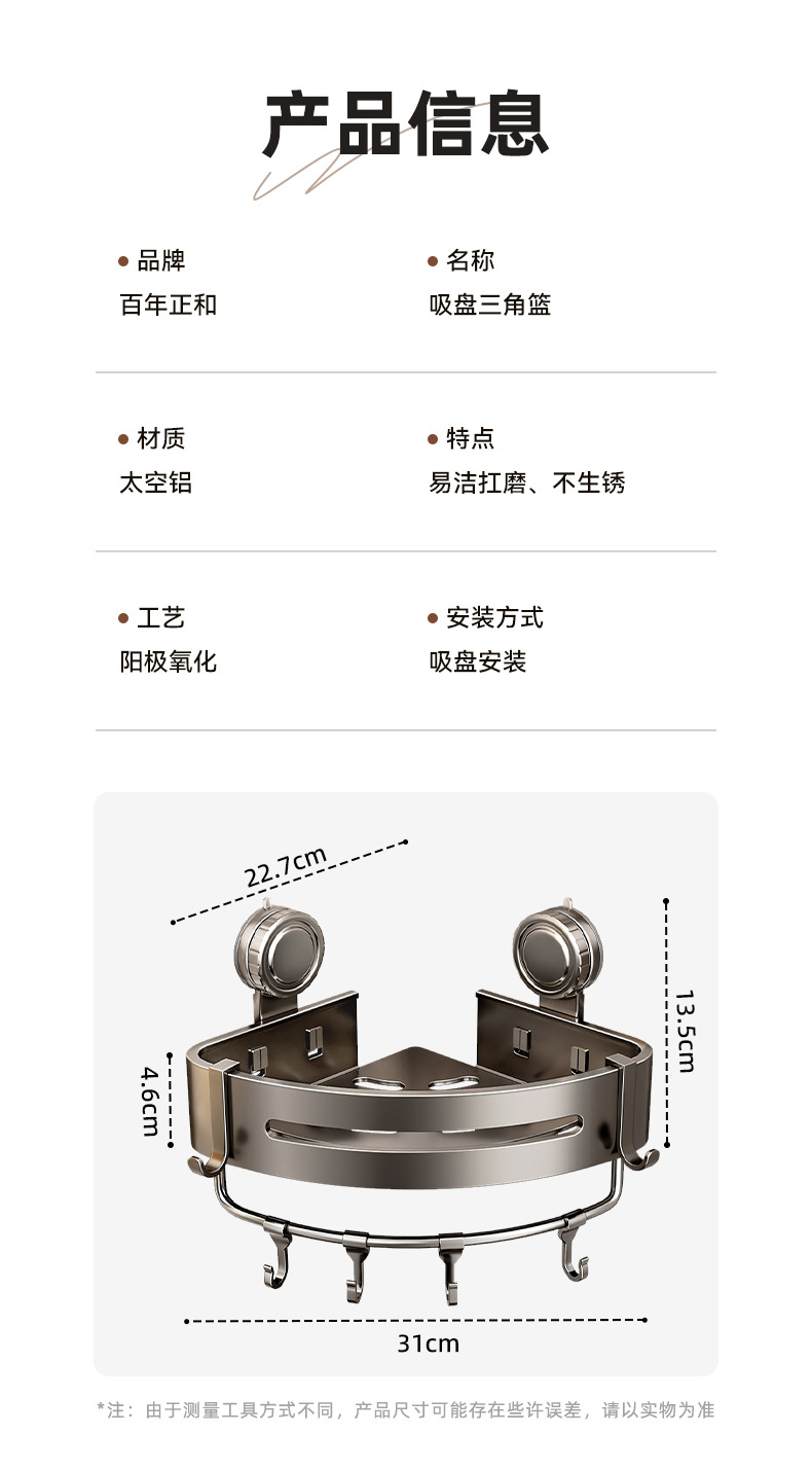 • [건그레이 더블 레이어] 막대 포함] 흡입 컵 삼각형 바구니 + 후크 8개