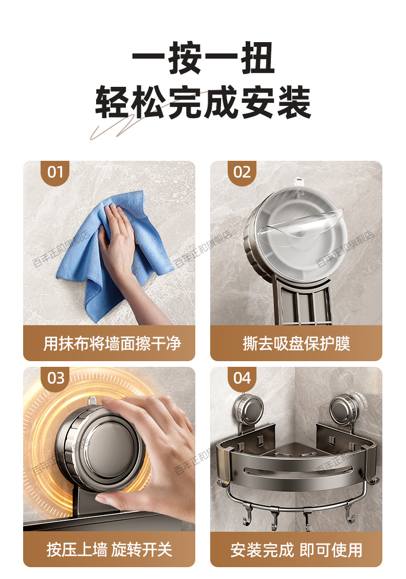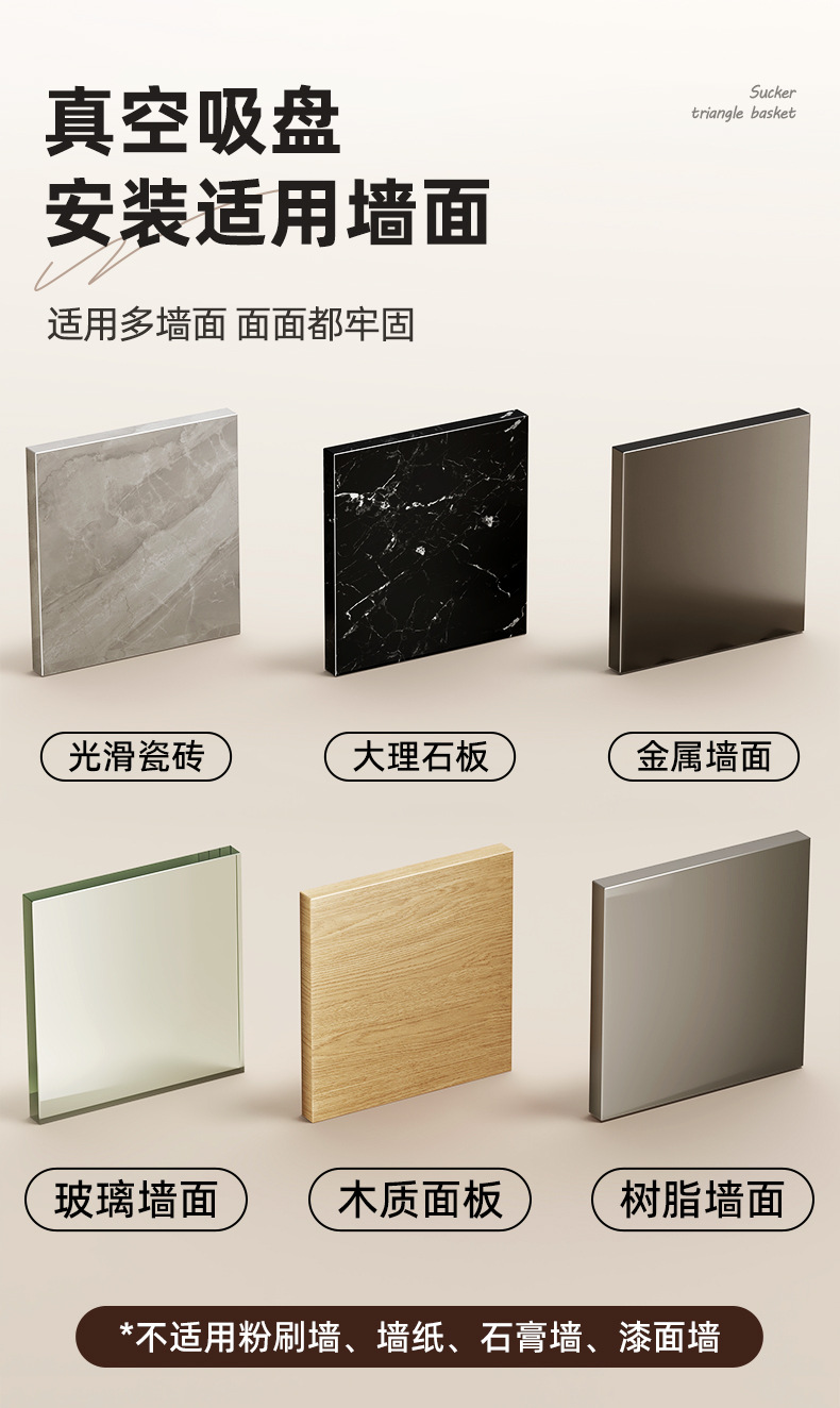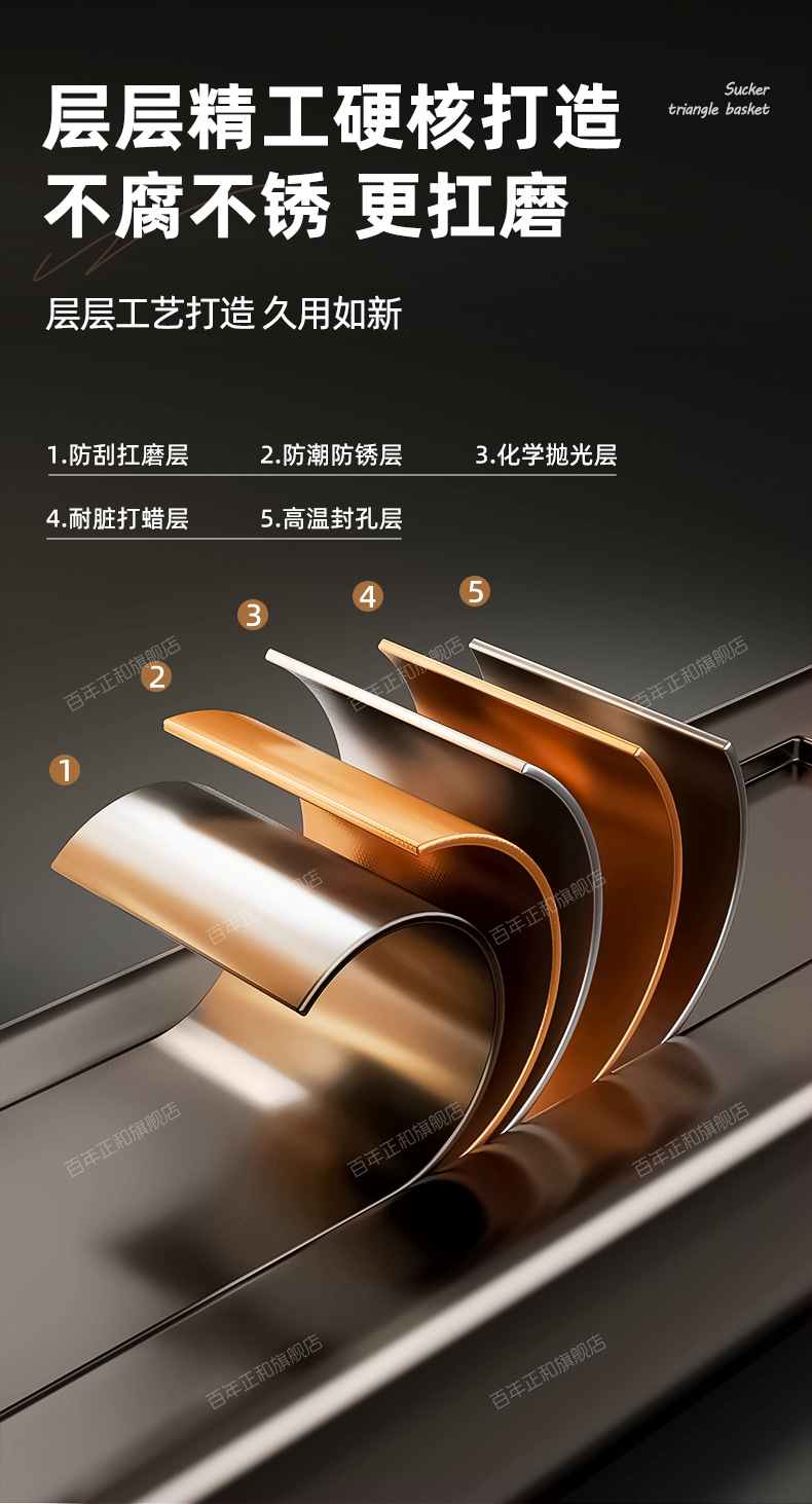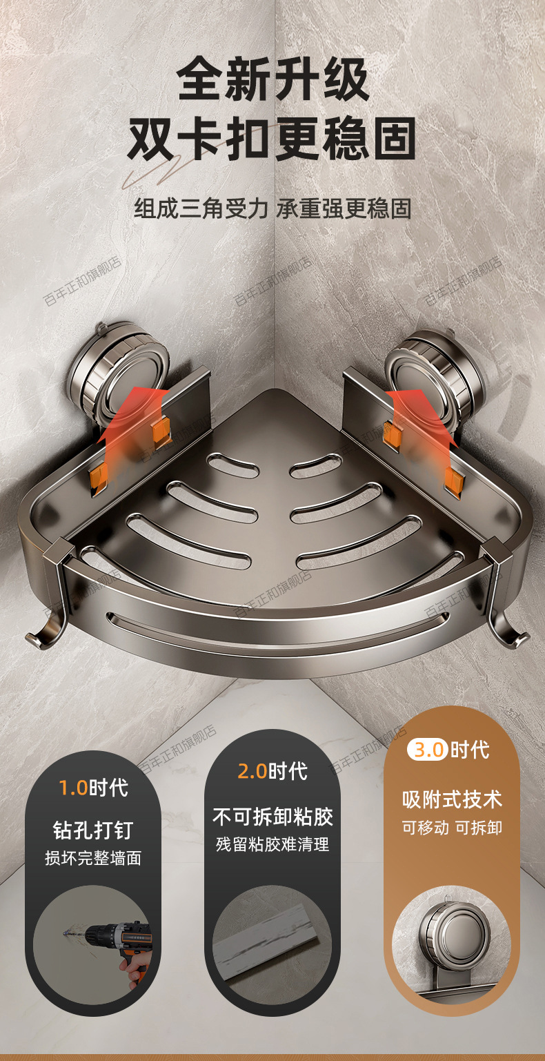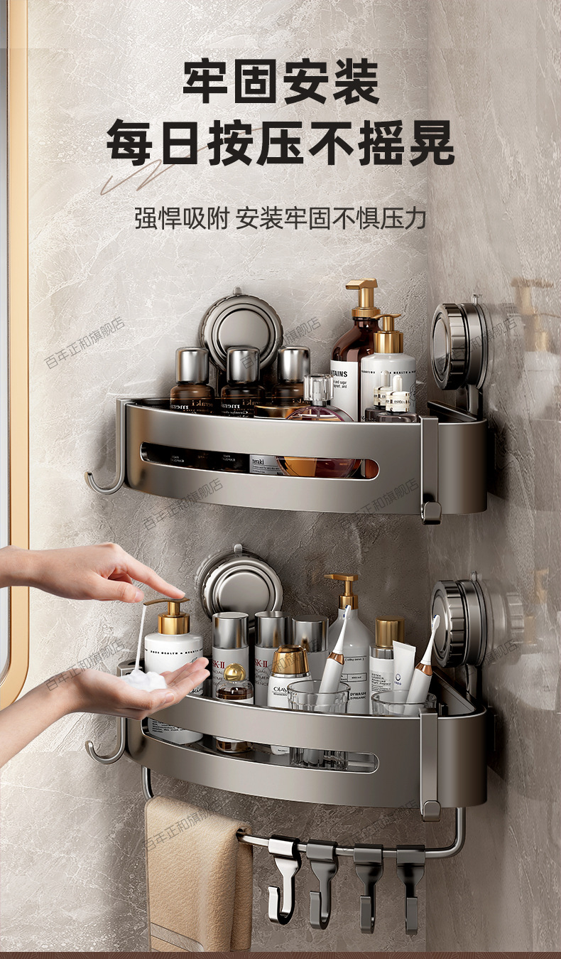 • [건그레이 더블 레이어] 막대 포함] 흡입 컵 삼각형 바구니 + 후크 8개