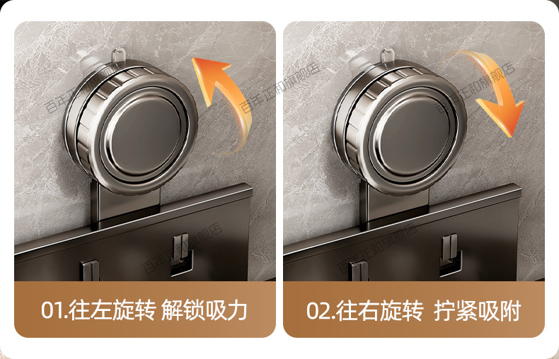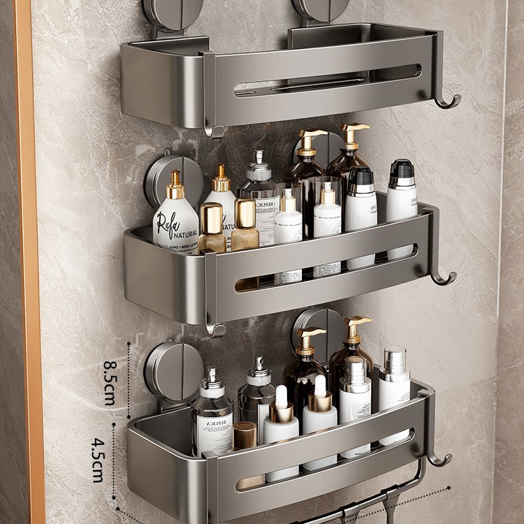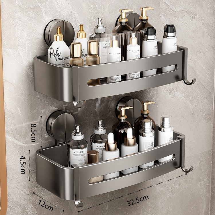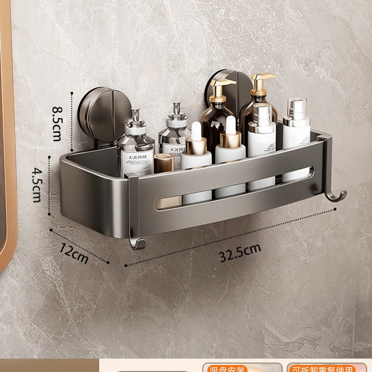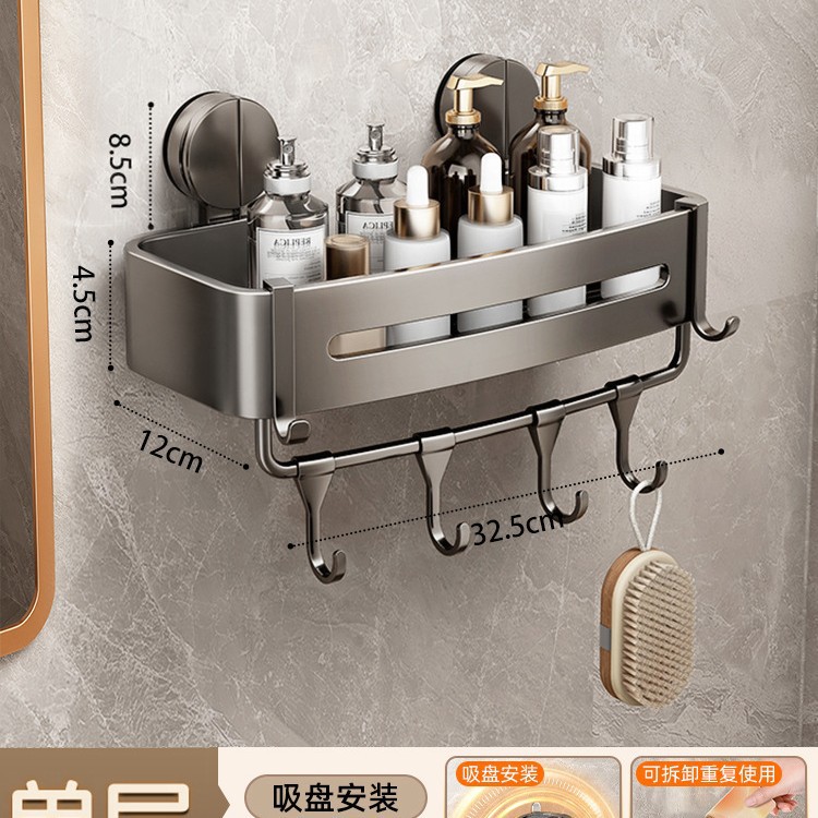 • [건그레이 더블 레이어] 막대 포함] 흡입 컵 사각 바구니 + 후크 8개