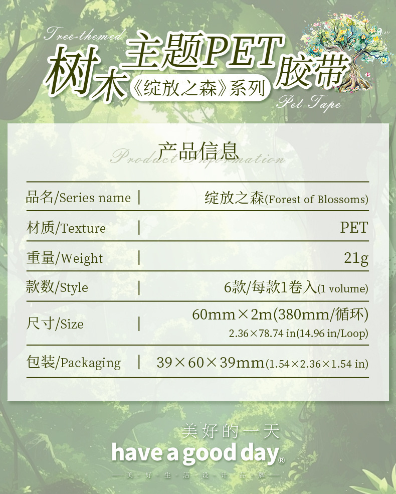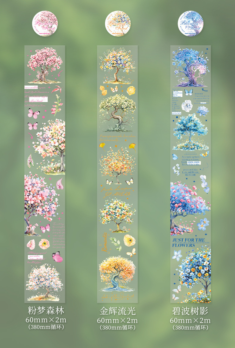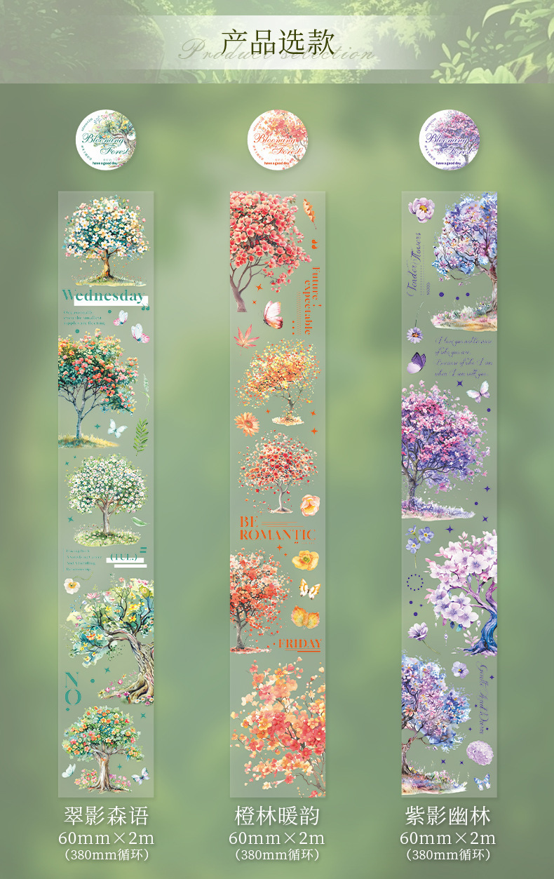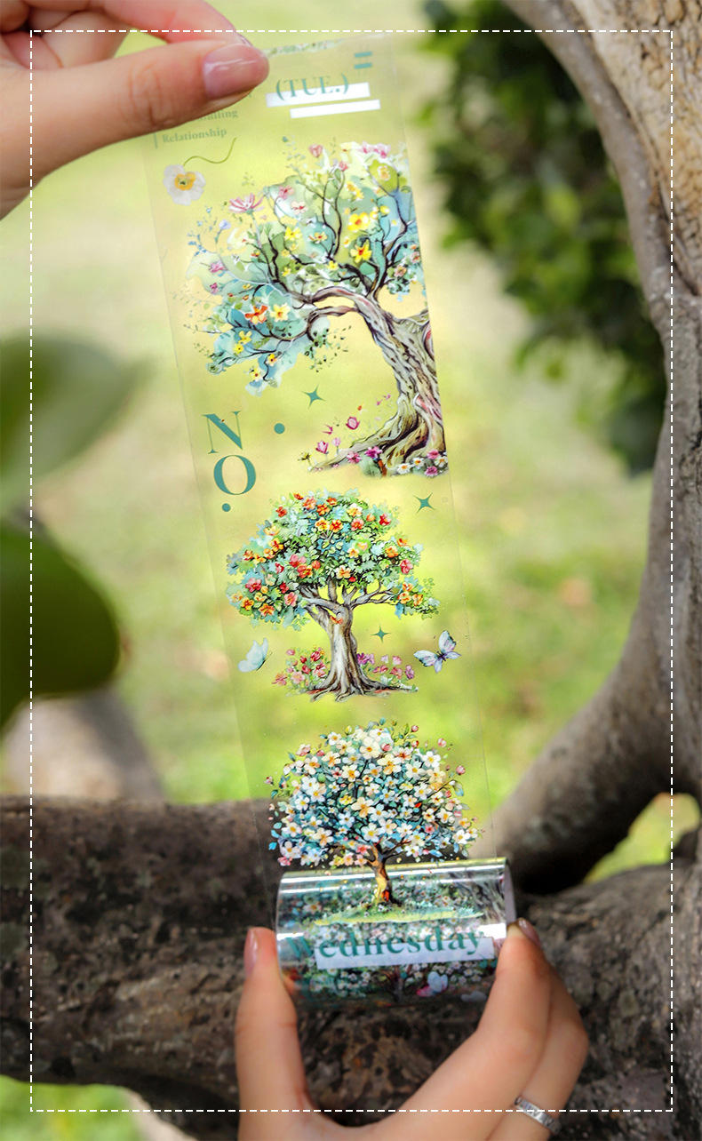 좋은 날 PET 테이프 Blooming Forest 시리즈 나무 테마 장식 루프 스티커 6가지 스타일