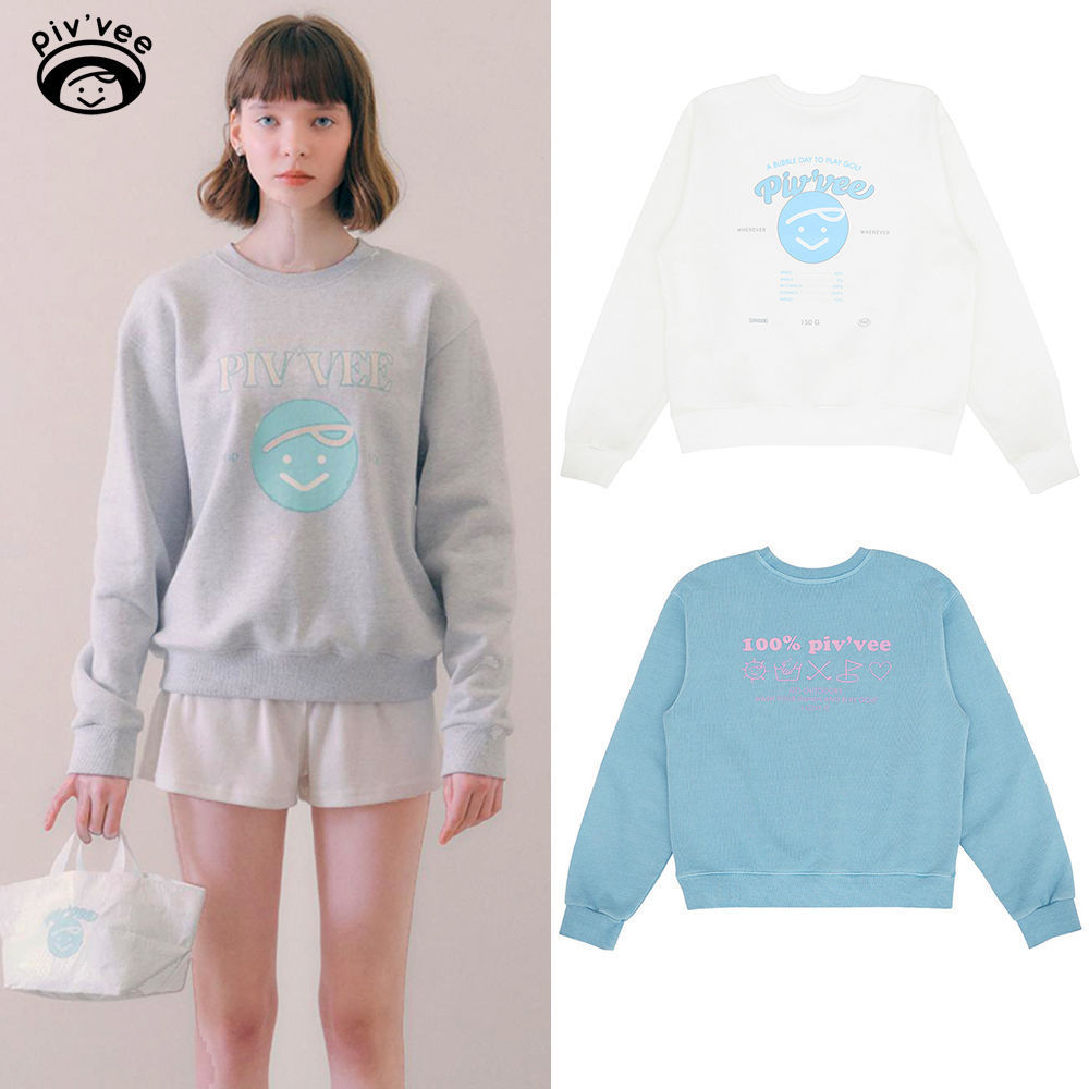 PIVVEE 골프웨어 여성 봄, 가을 로고 패턴 라운드 넥 스웨트 셔츠 편안한 스포츠 탑스토어 가기