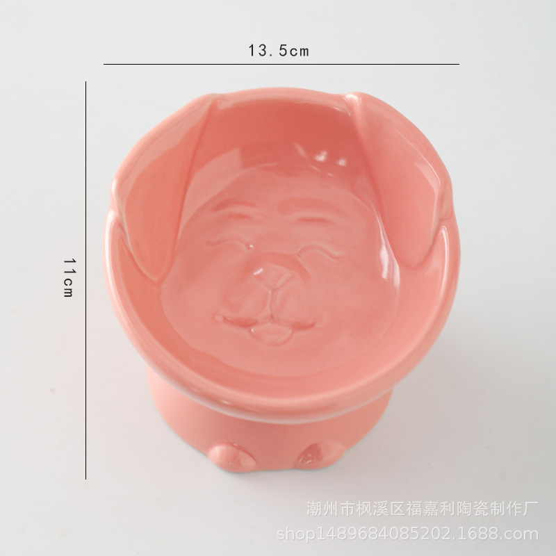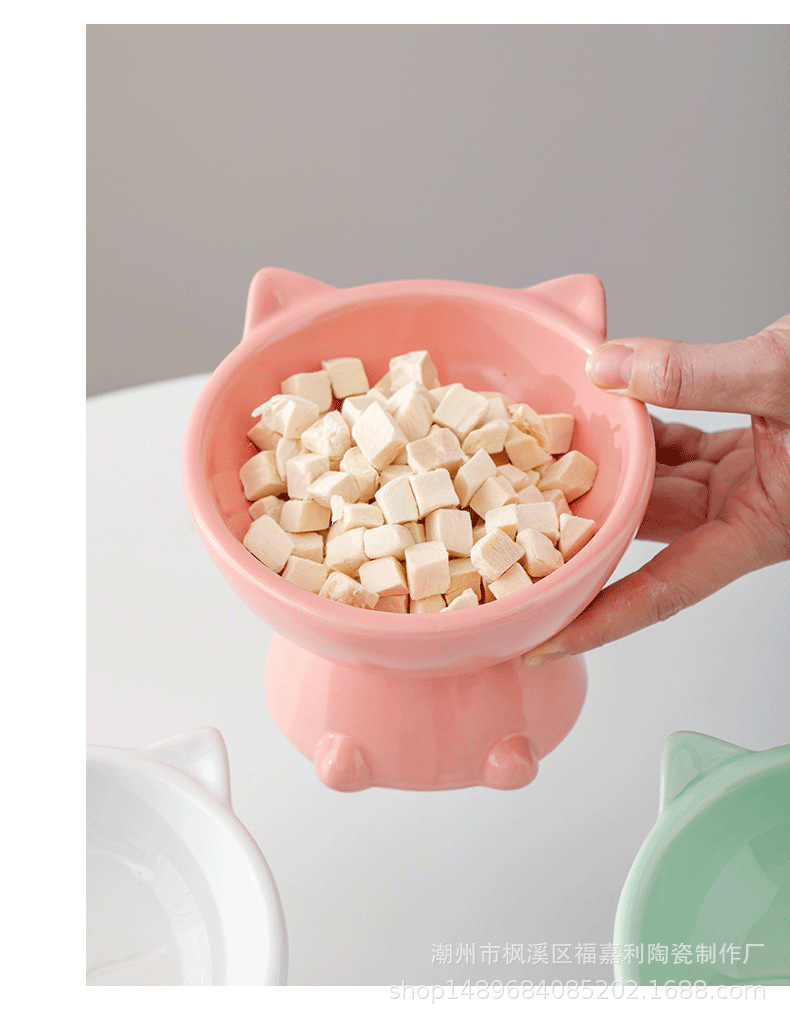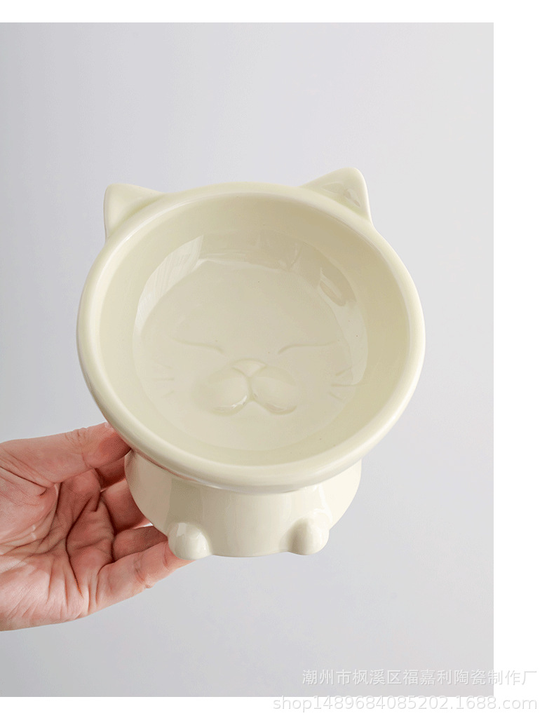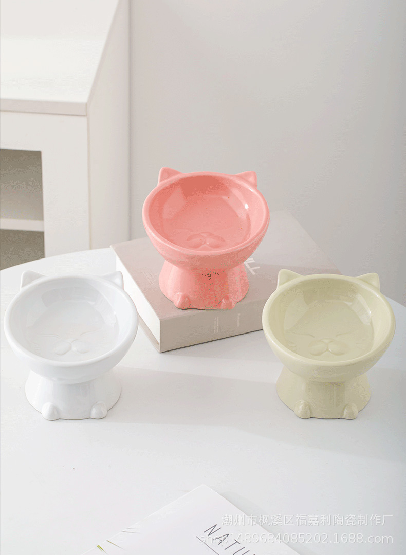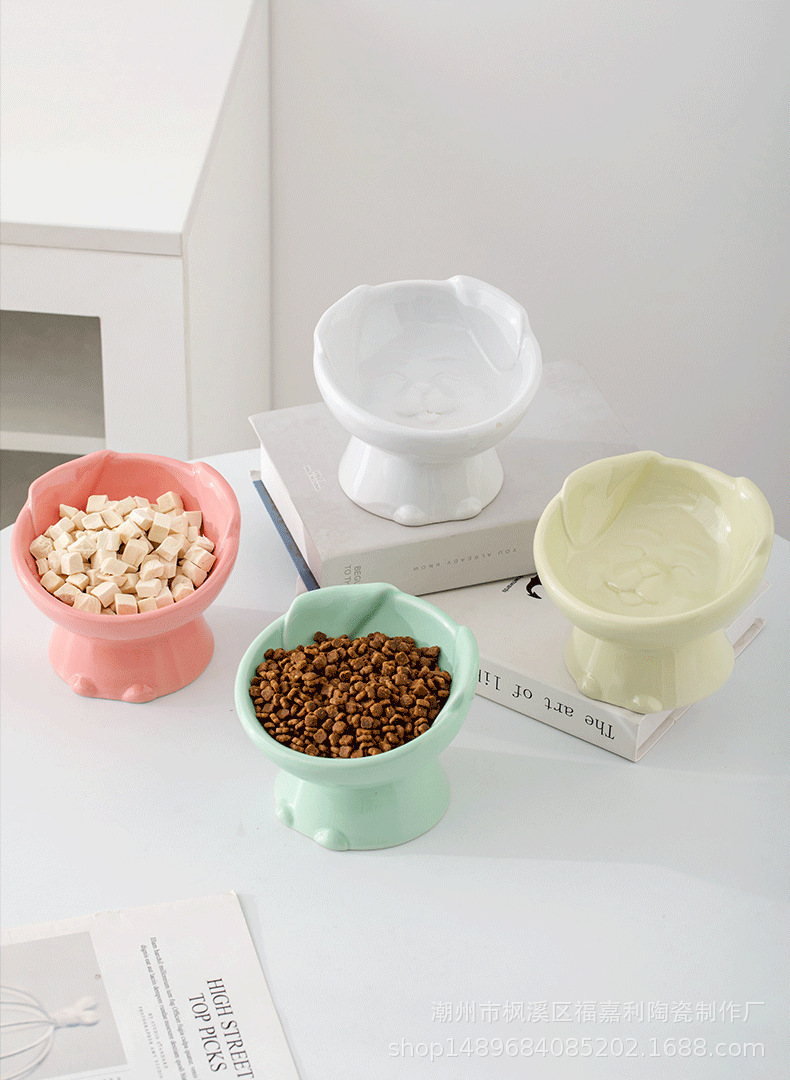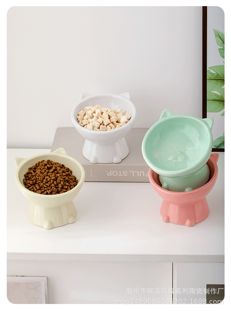 국경 간 맞춤형 만화 세라믹 고양이와 개 높은 애완 동물 그릇 Amazon 맞춤형 목 보호 애완 동물 그릇 양각 고양이 먹이 그릇스토어 가기