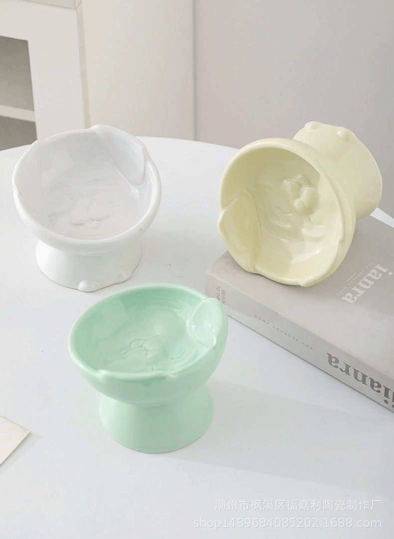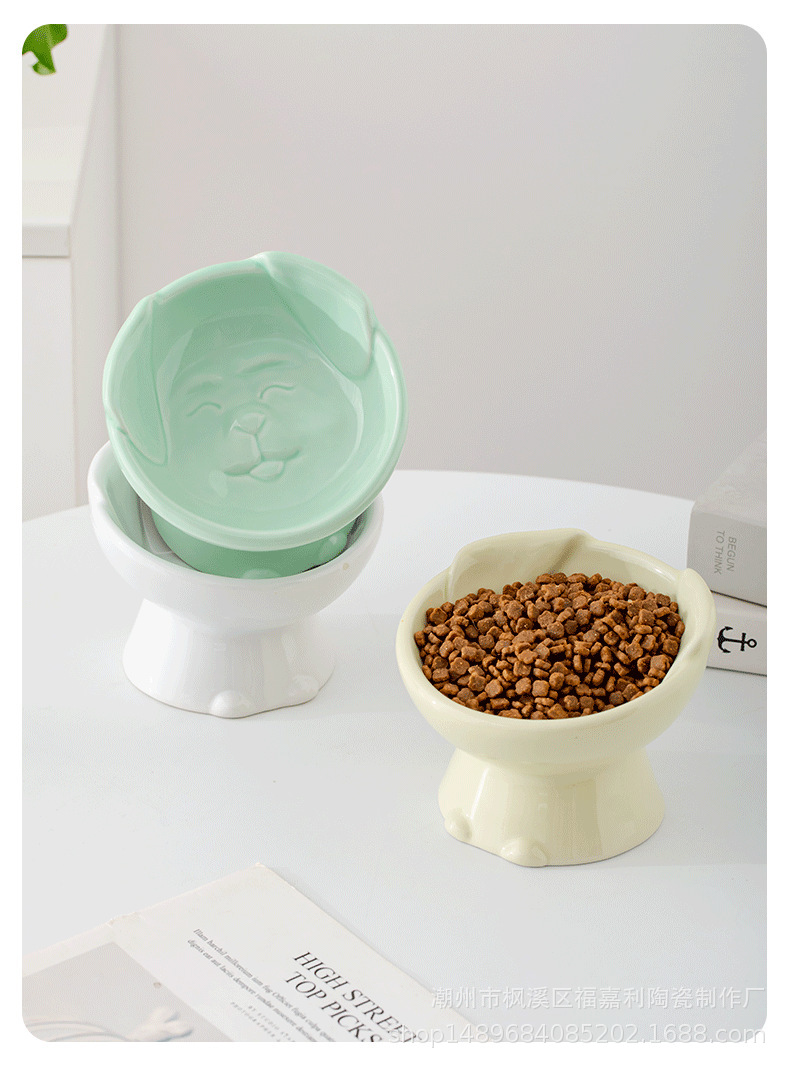 국경 간 맞춤형 만화 세라믹 고양이와 개 높은 애완 동물 그릇 Amazon 맞춤형 목 보호 애완 동물 그릇 양각 고양이 먹이 그릇