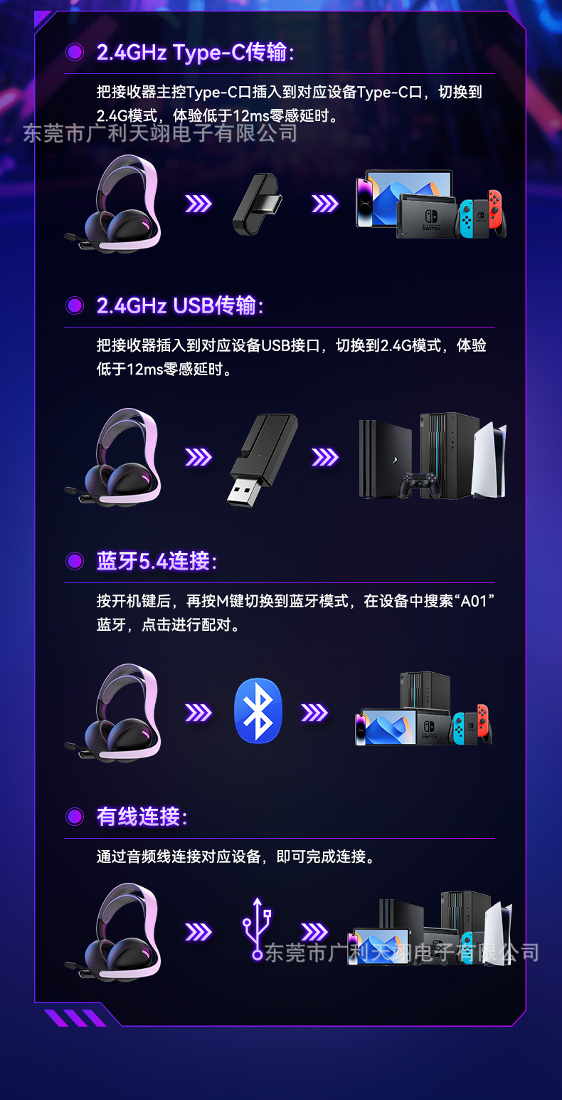 A01 전문 e-스포츠 게임 헤드셋 3모드 연결 P4/P5 SwitchPC 휴대폰 태블릿 신제품