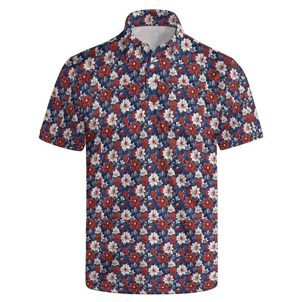 트렌디한 선구자 필수 스포츠 패션 캐주얼 스타일 남성 휴가 3D 디지털 프린트 반소매 라펠 폴로 셔츠
