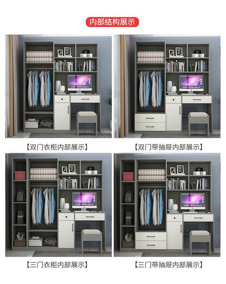 • 1.8m 서랍+책상이 있는 문 3개(스툴 포함) 옷장 오른쪽