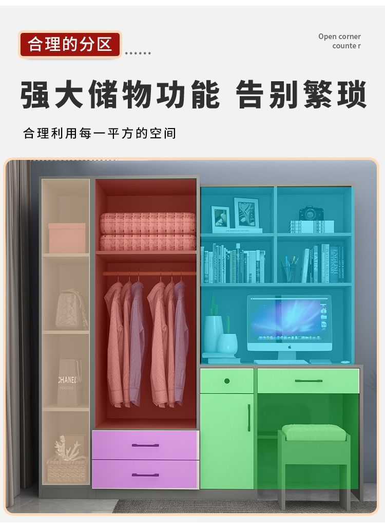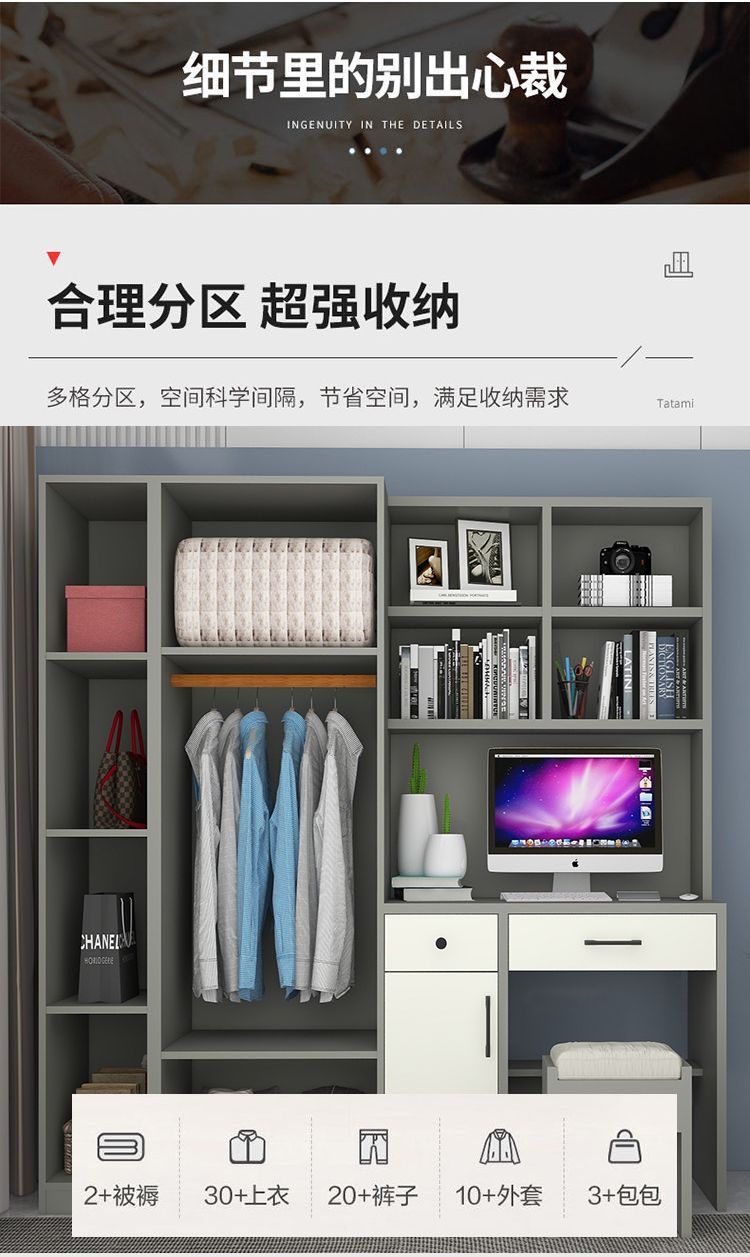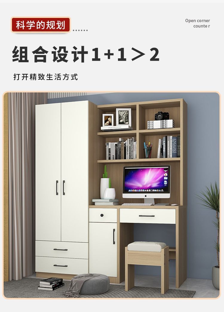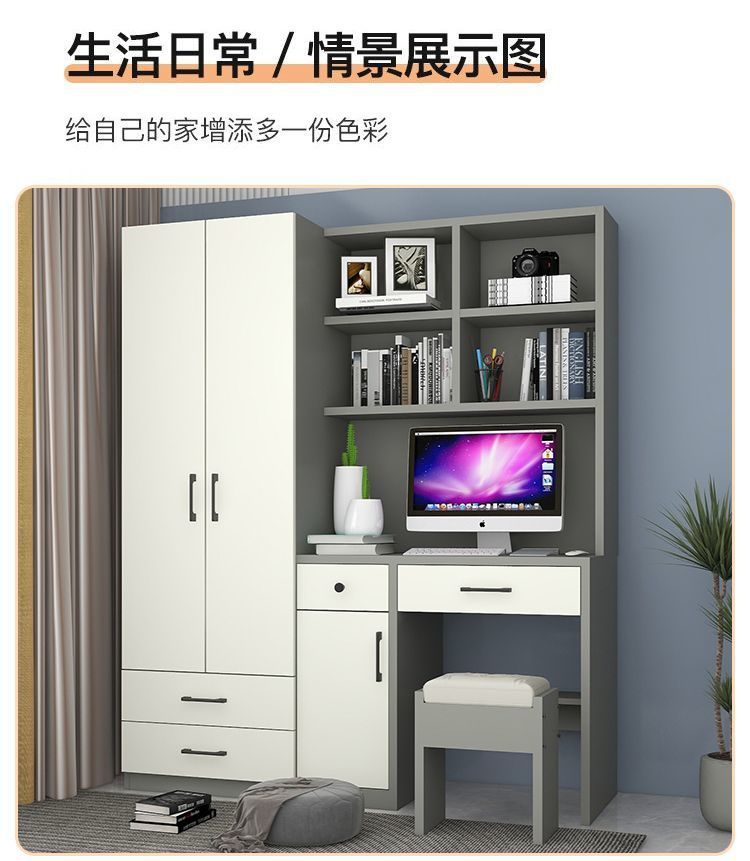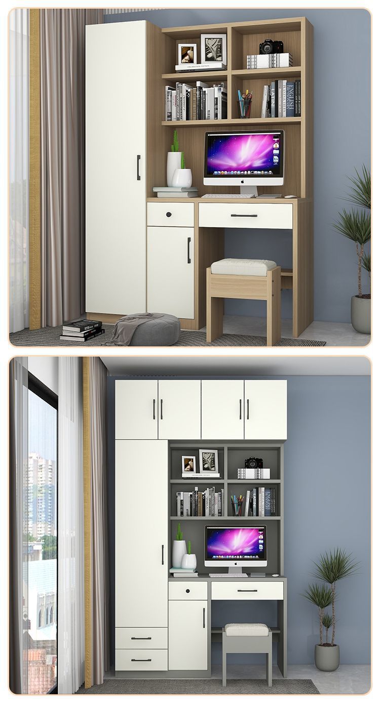 옷장이 있는 간단한 책상, 일체형 어린이 방 컴퓨터 책상, 책장 조합, 소형 가정용 침실 책상스토어 가기