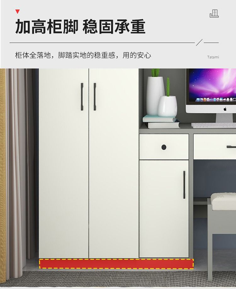 • 1.5m 서랍이 있는 이중 도어 + 책상 + 상단(스툴 포함) 캐비닛 오른쪽