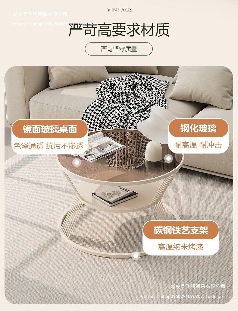 간단하고 창의적인 투명 원형 테이블 북유럽 미니멀리스트 아파트 원형 티 테이블 작은 아파트 거실 Changhong 유리 커피 테이블스토어 가기