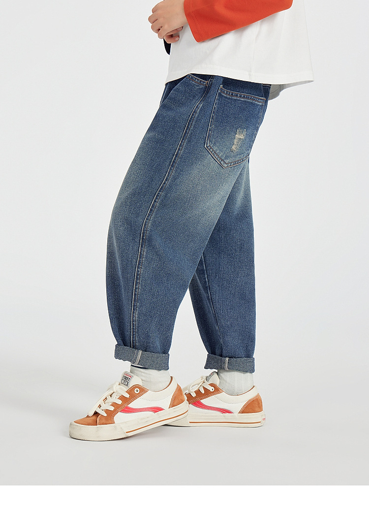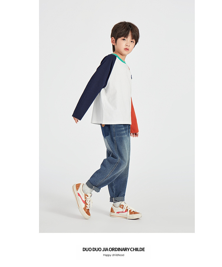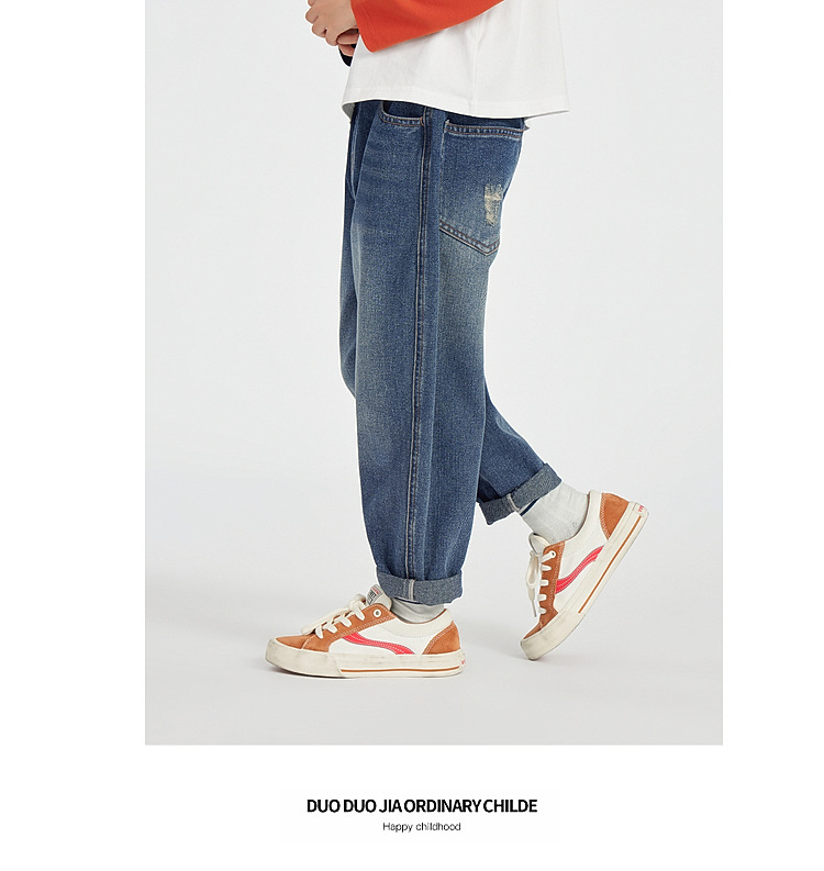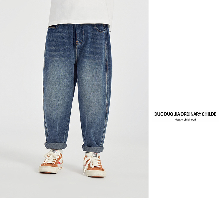 Duojia 소년 청바지 2025 봄, 가을 스타일 하이 코튼 워시 부드럽고 왁시하고 편안한 아동용 다용도 패션 캐주얼 바지스토어 가기